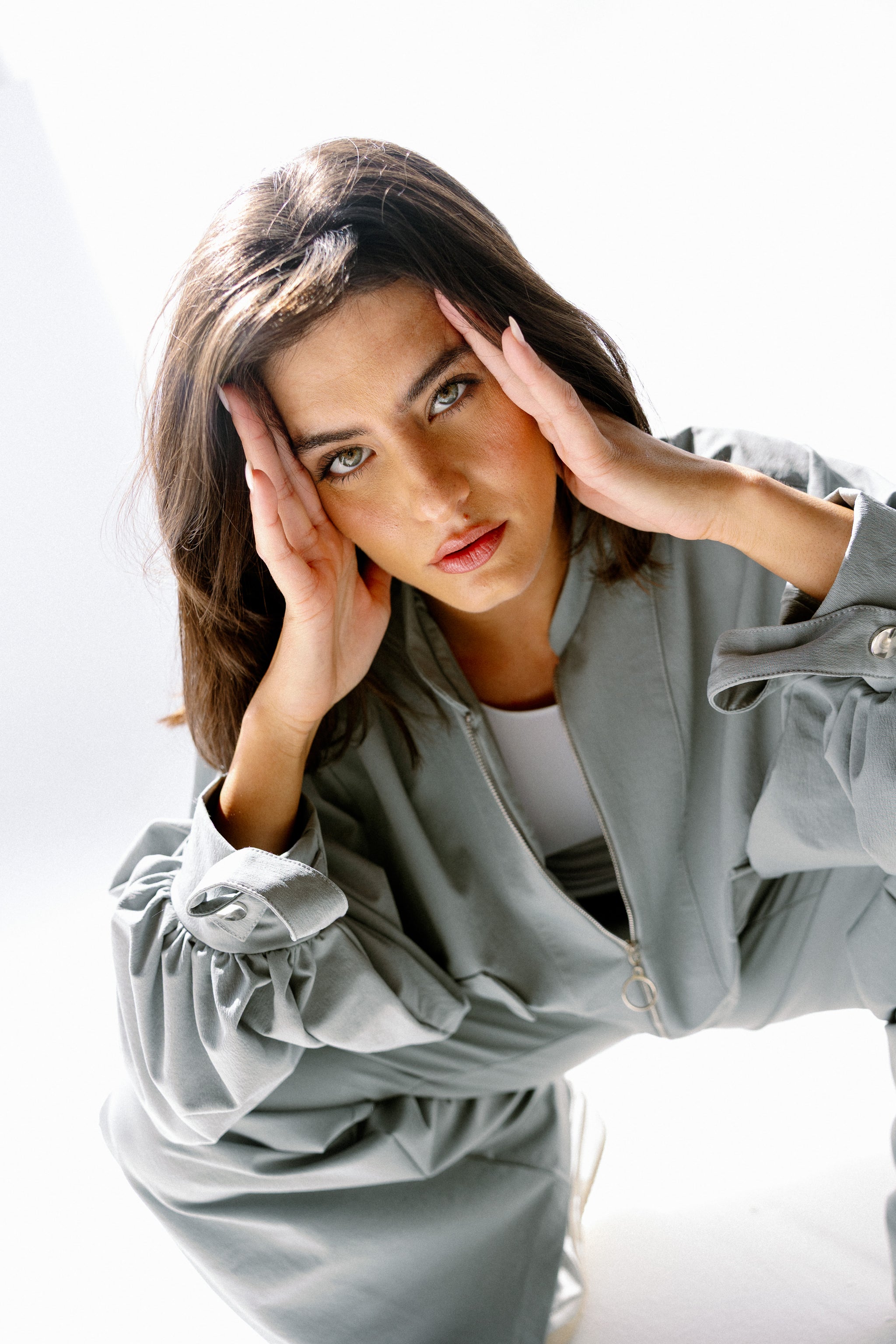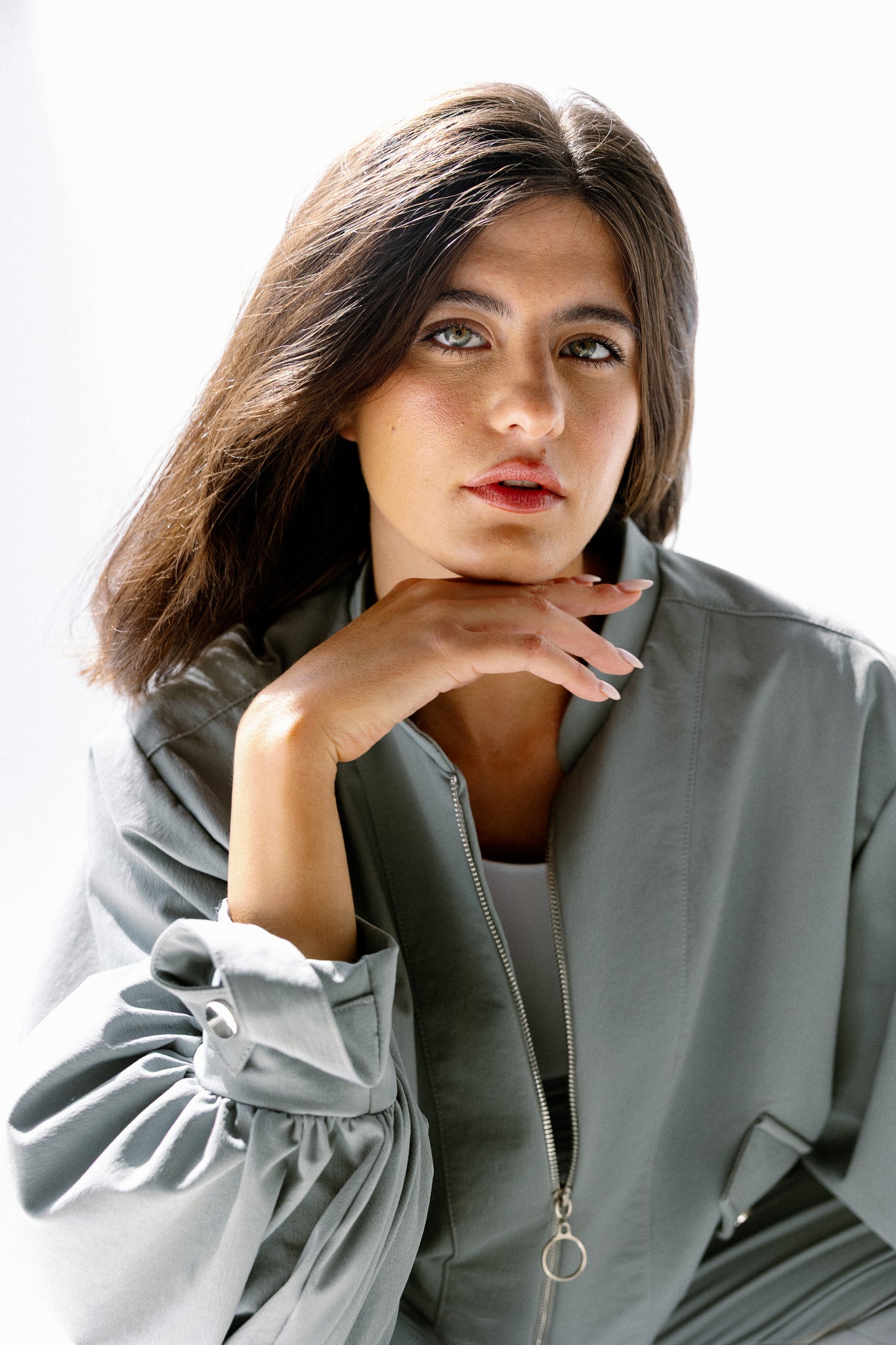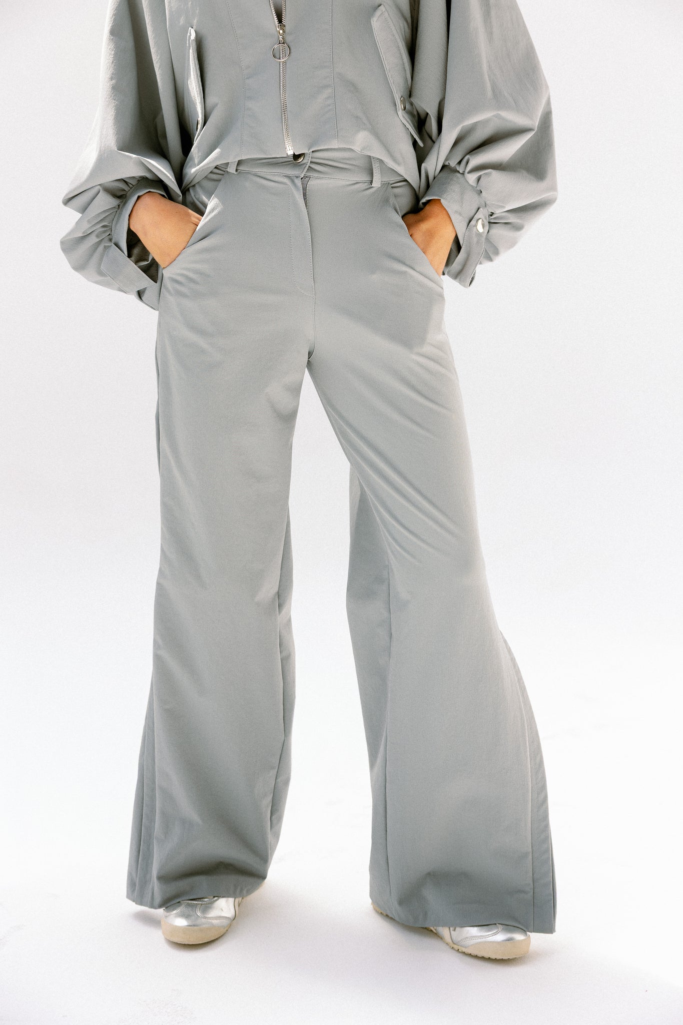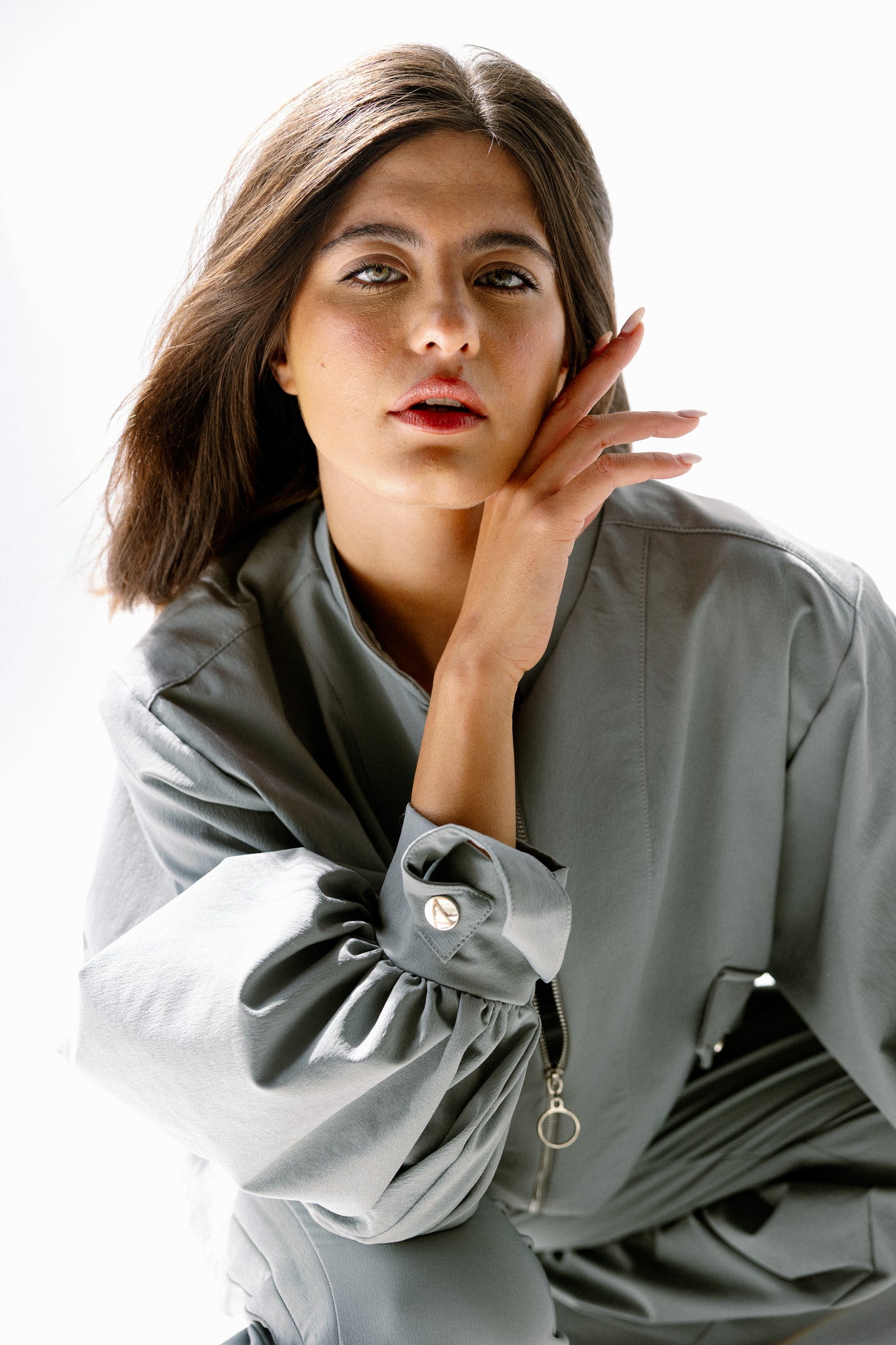 A cropped bomber jacket with exaggerated balloon sleeves and structured cuffs — creating a bold yet fluid silhouette. Individually striking, but effortlessly powerful when paired with the storm core pants.