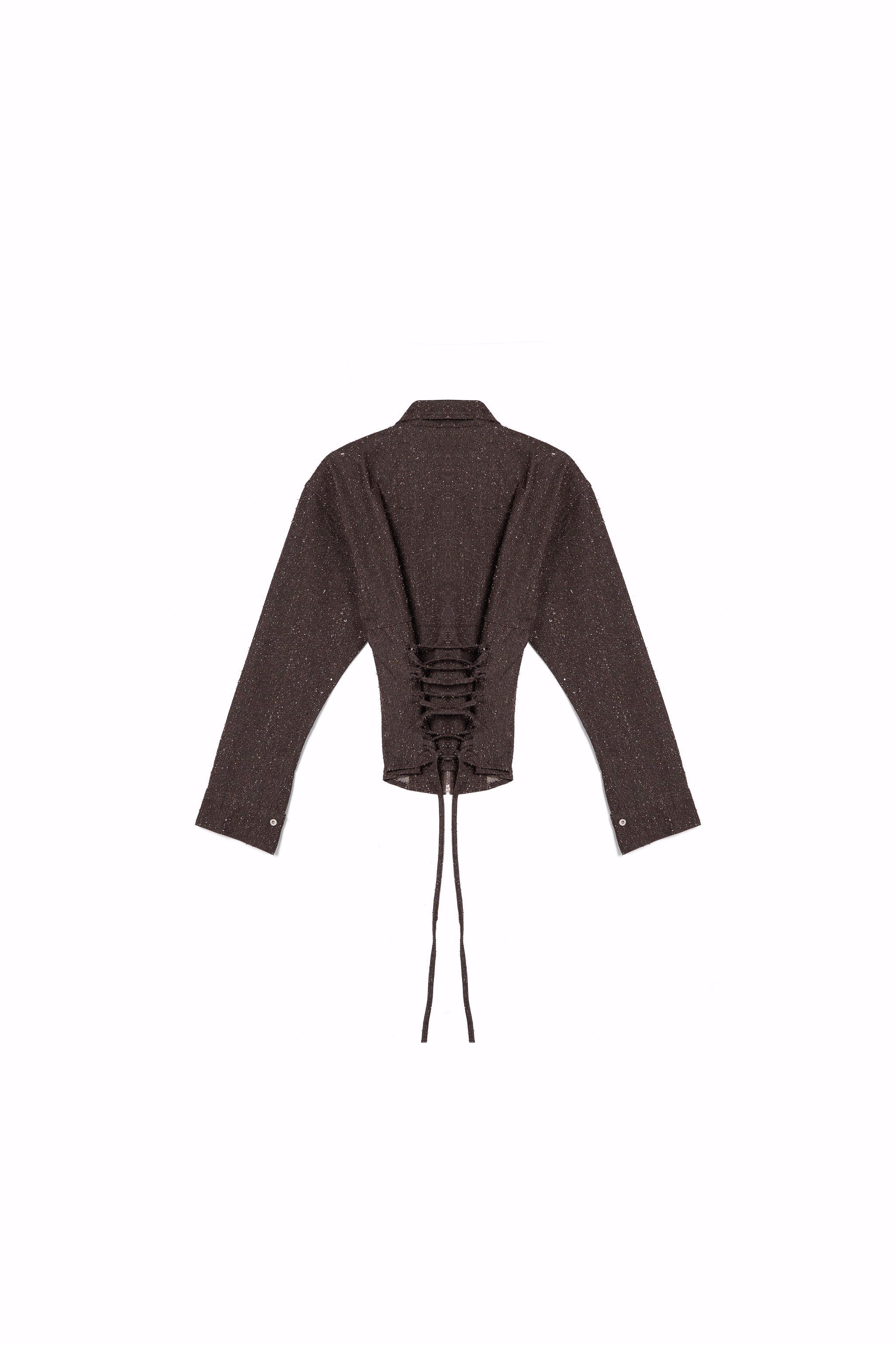A modern tailored jacket with a statement back, perfect for elevating everyday looks.