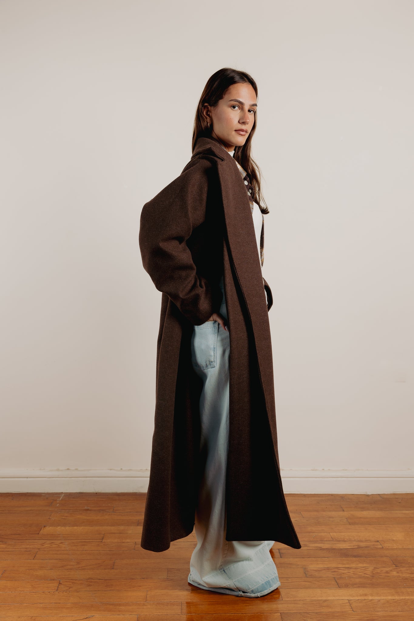 Description:Made from soft, dense wool felt, this coat balances structure and comfort. The double-scarf detail drapes gracefully over the shoulders, creating an elegant and practical silhouette.
