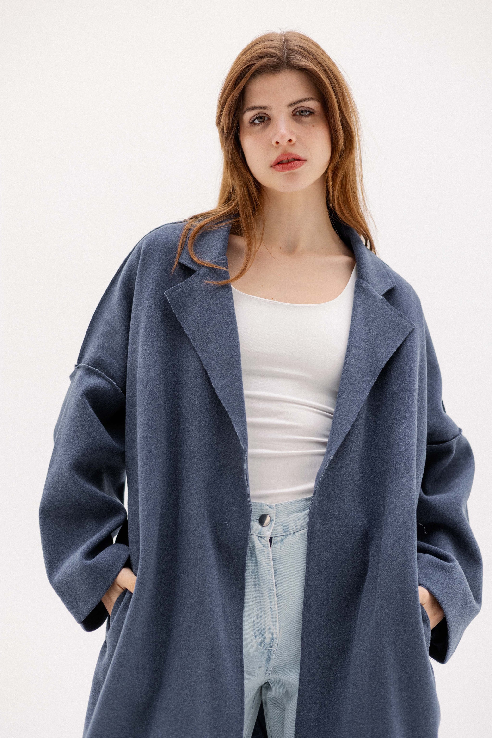 This coat is a masterclass in "effortless chic". It strikes that perfect balance between a structured silhouette and a relaxed, cozy feel. Made from soft wool felt.