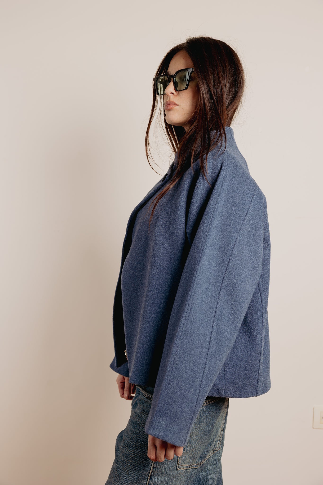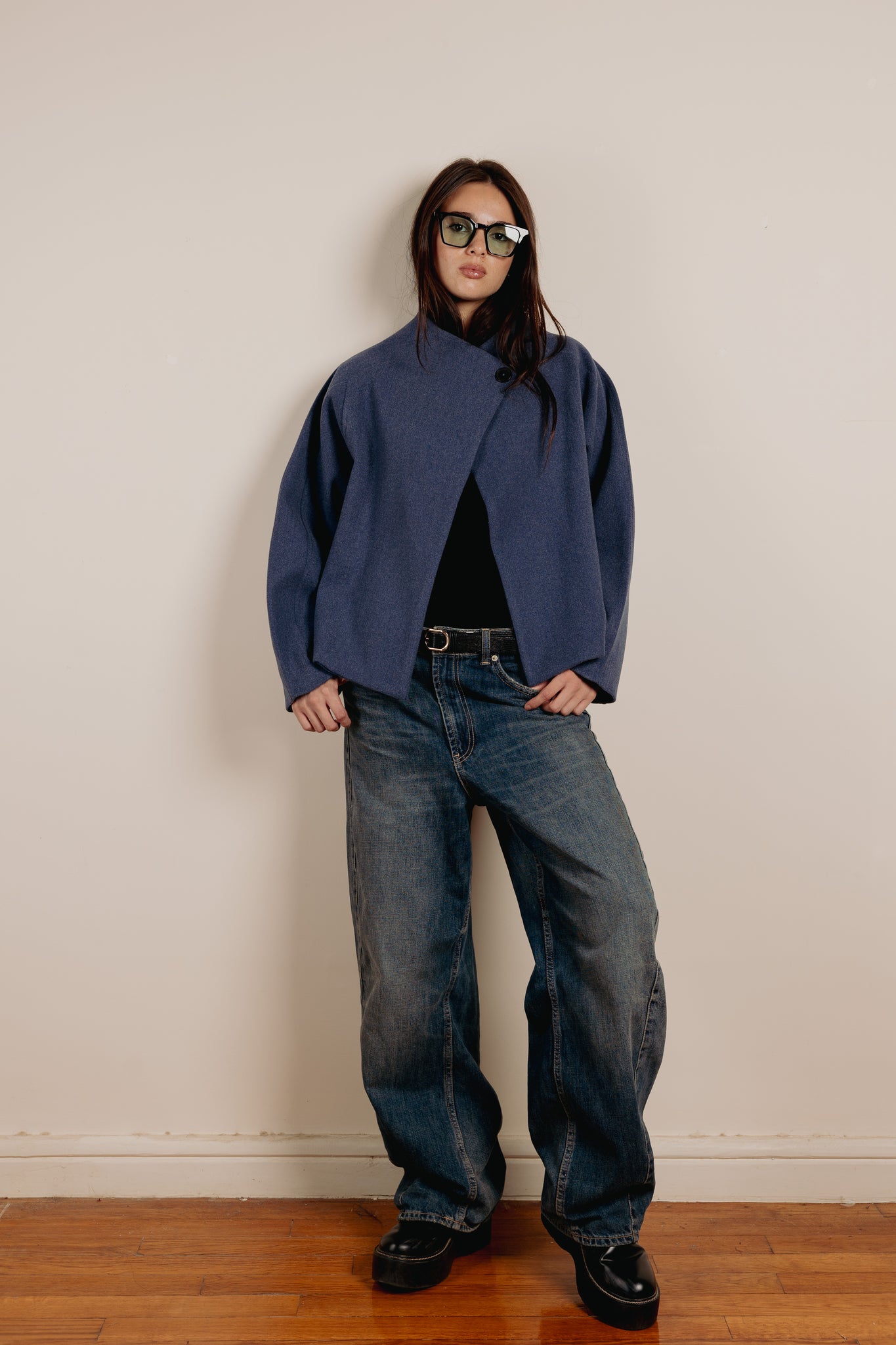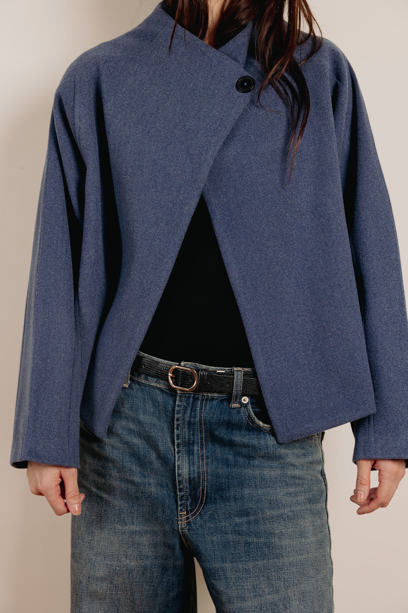 Description: Minimal yet architectural, The Fold Jacket is crafted from structured wool felt and designed with precision-cut panels that wrap the body in clean, sculptural lines