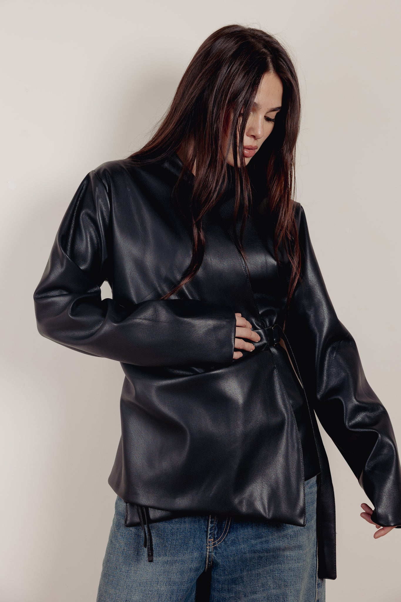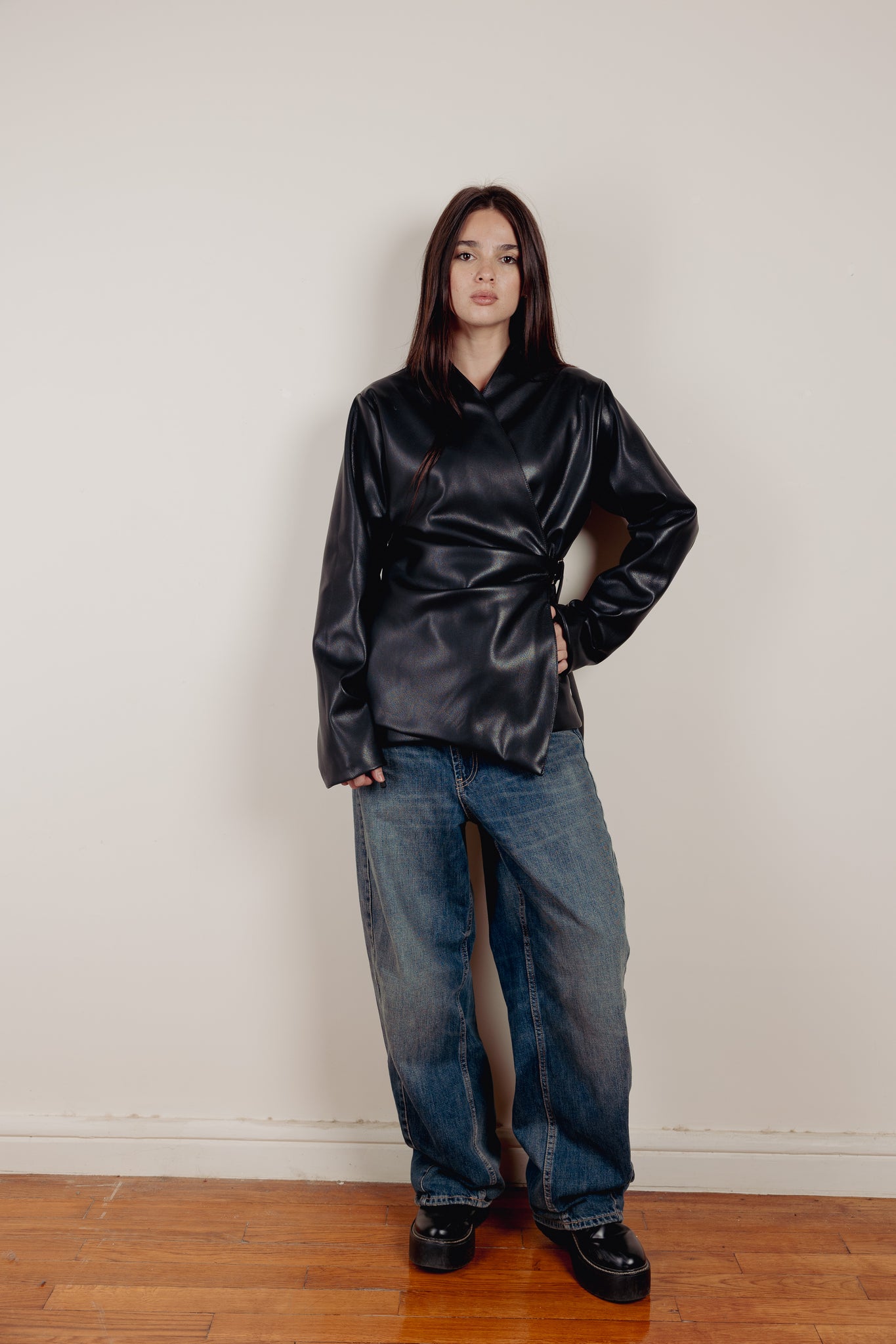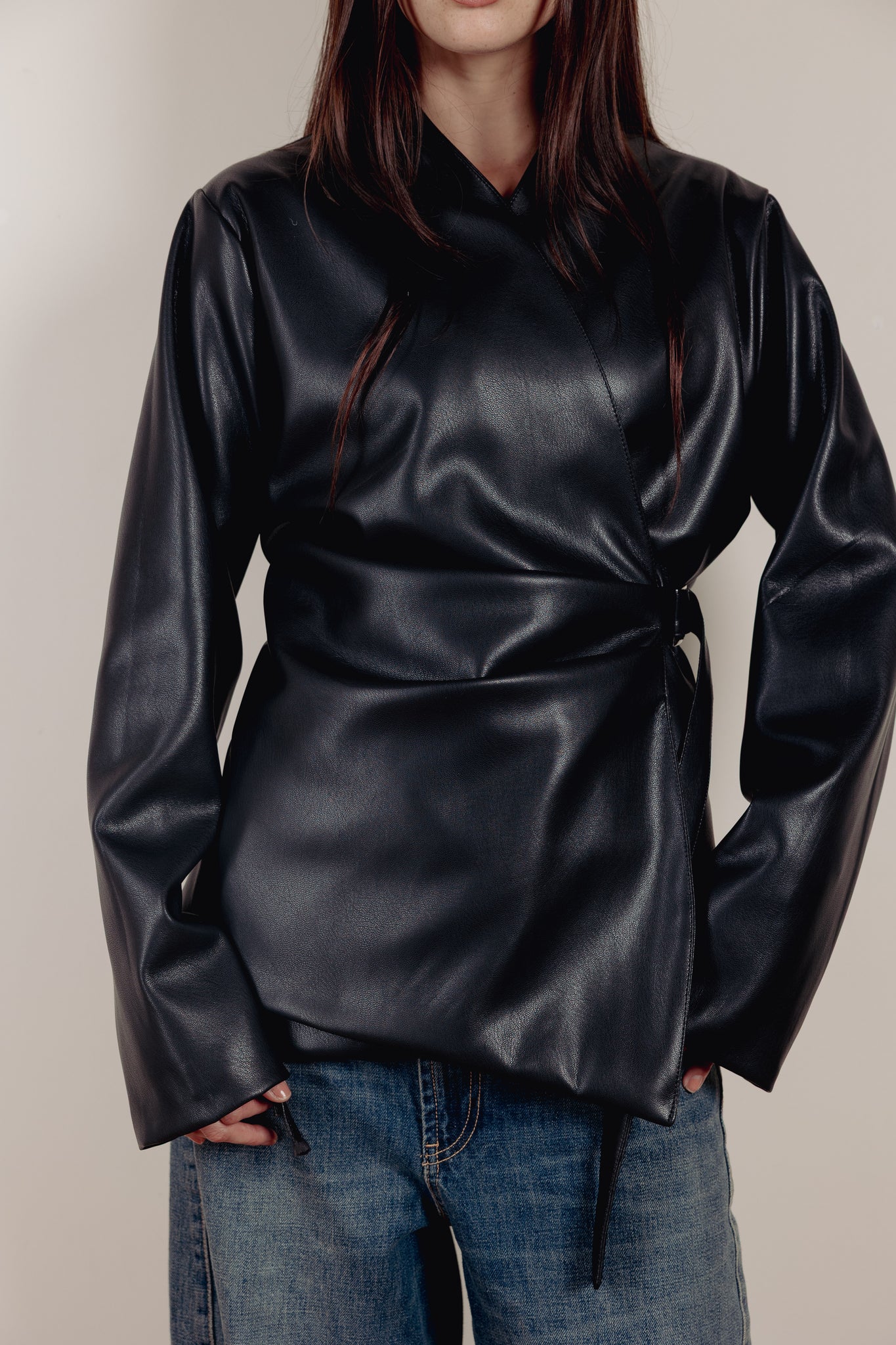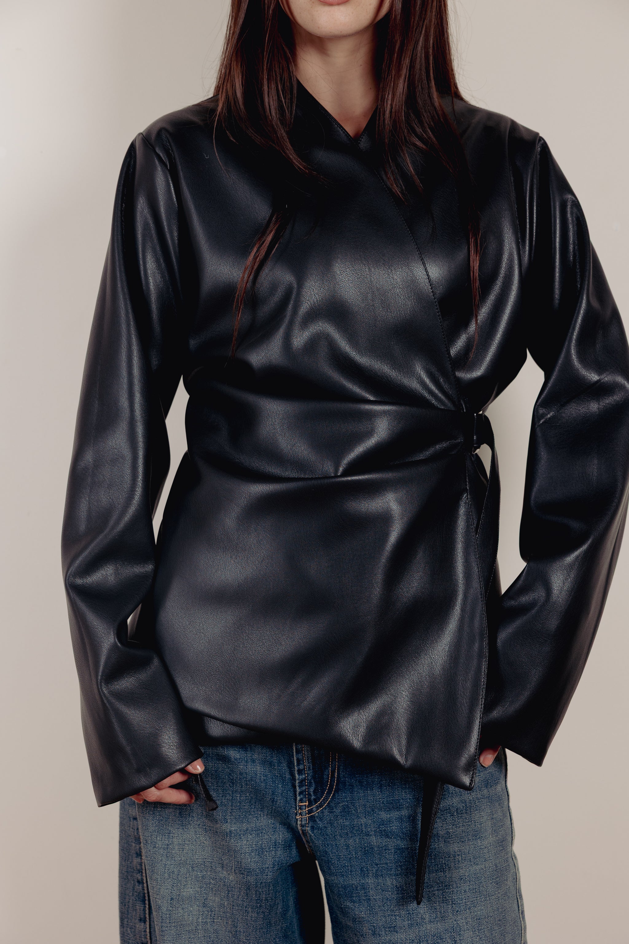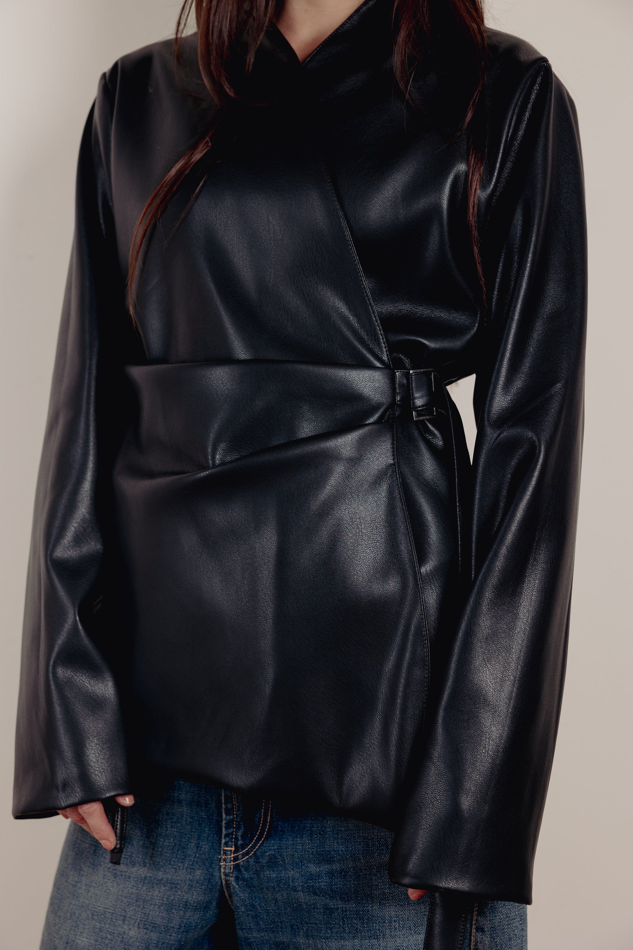 Description:Designed with a voluminous, relaxed fit and a striking asymmetrical wrap front. It closes with an accessory, creating a fluid, customized fit. The wide sleeves and clean neckline add to its sophisticated, deconstructed look.