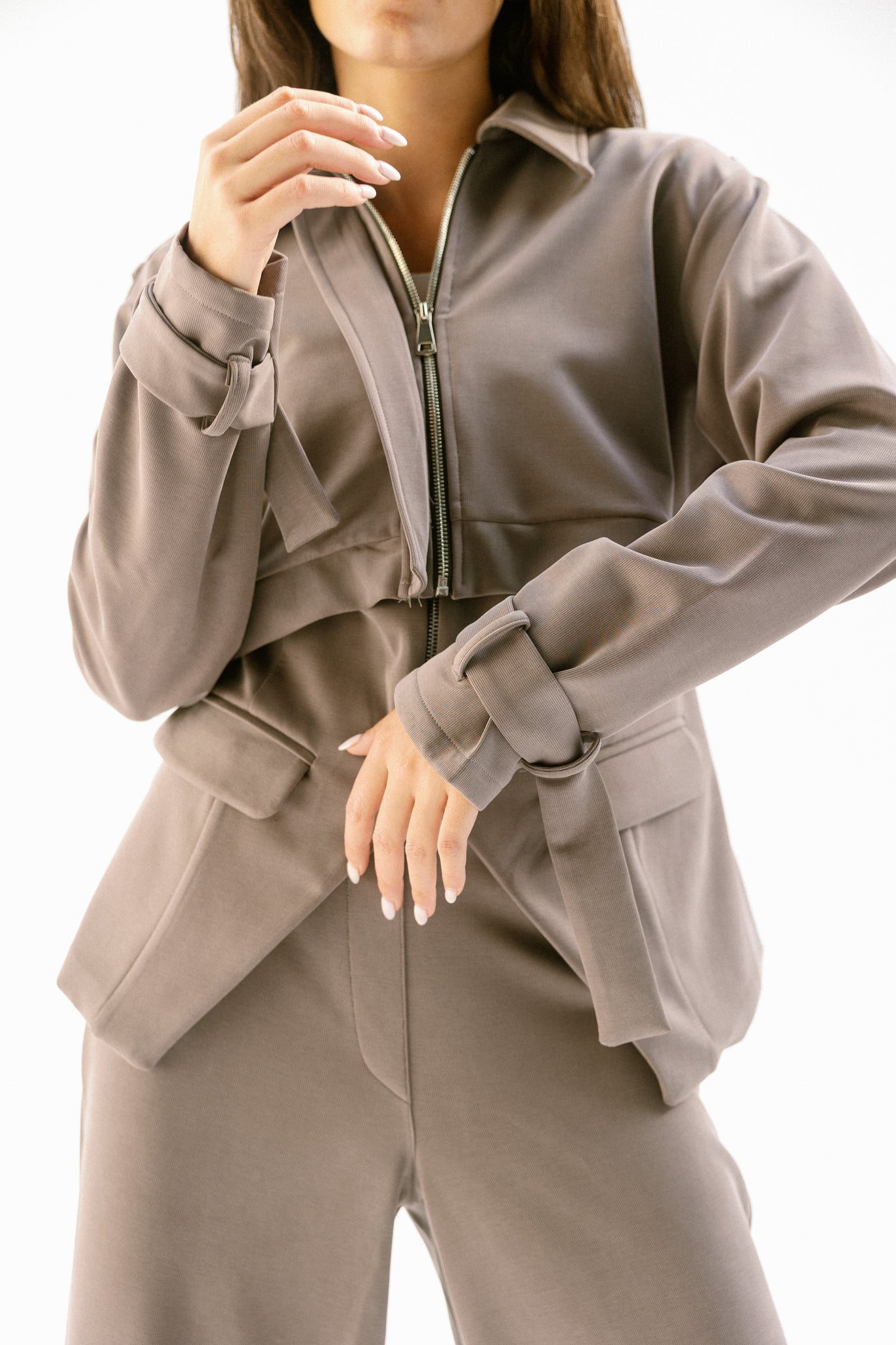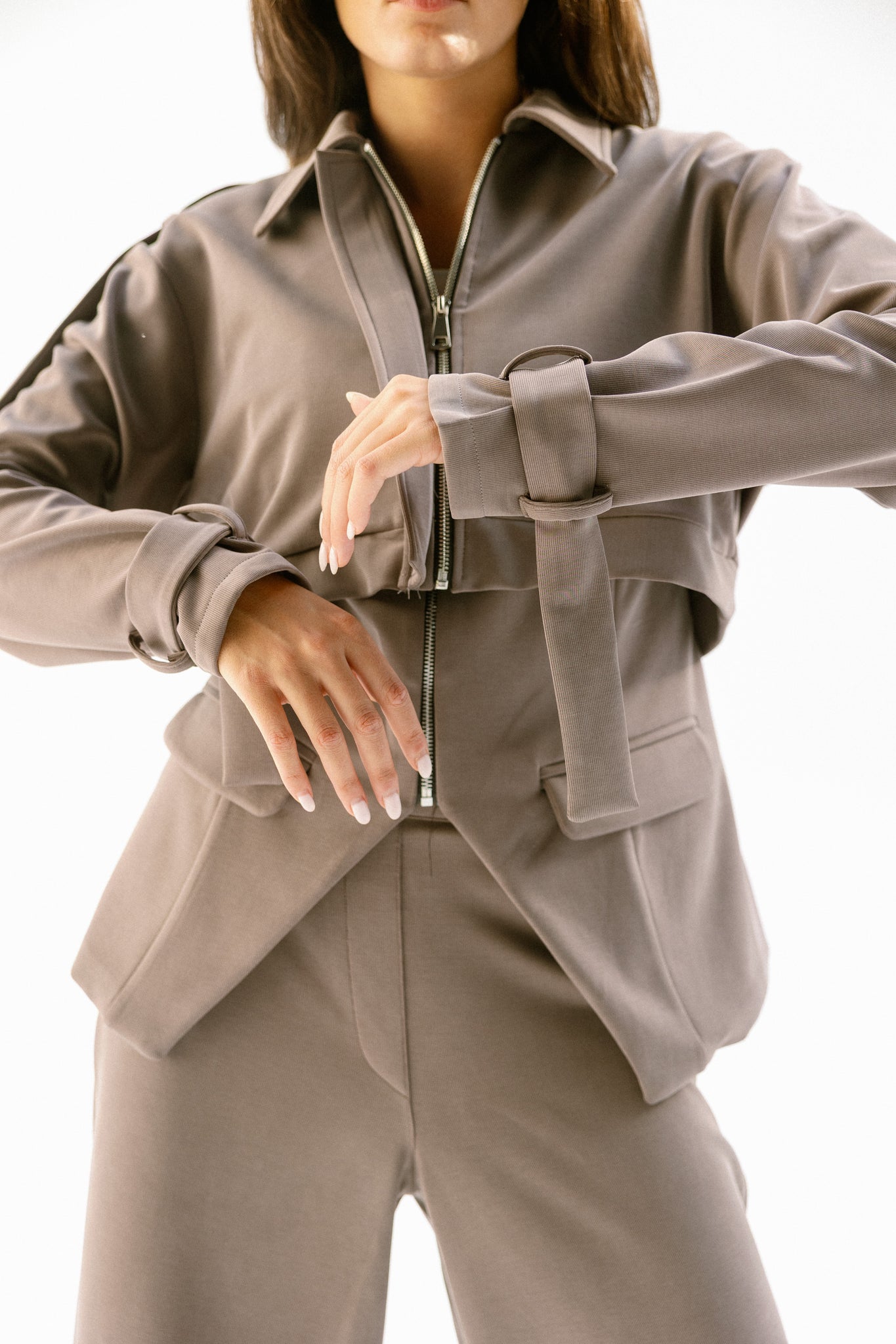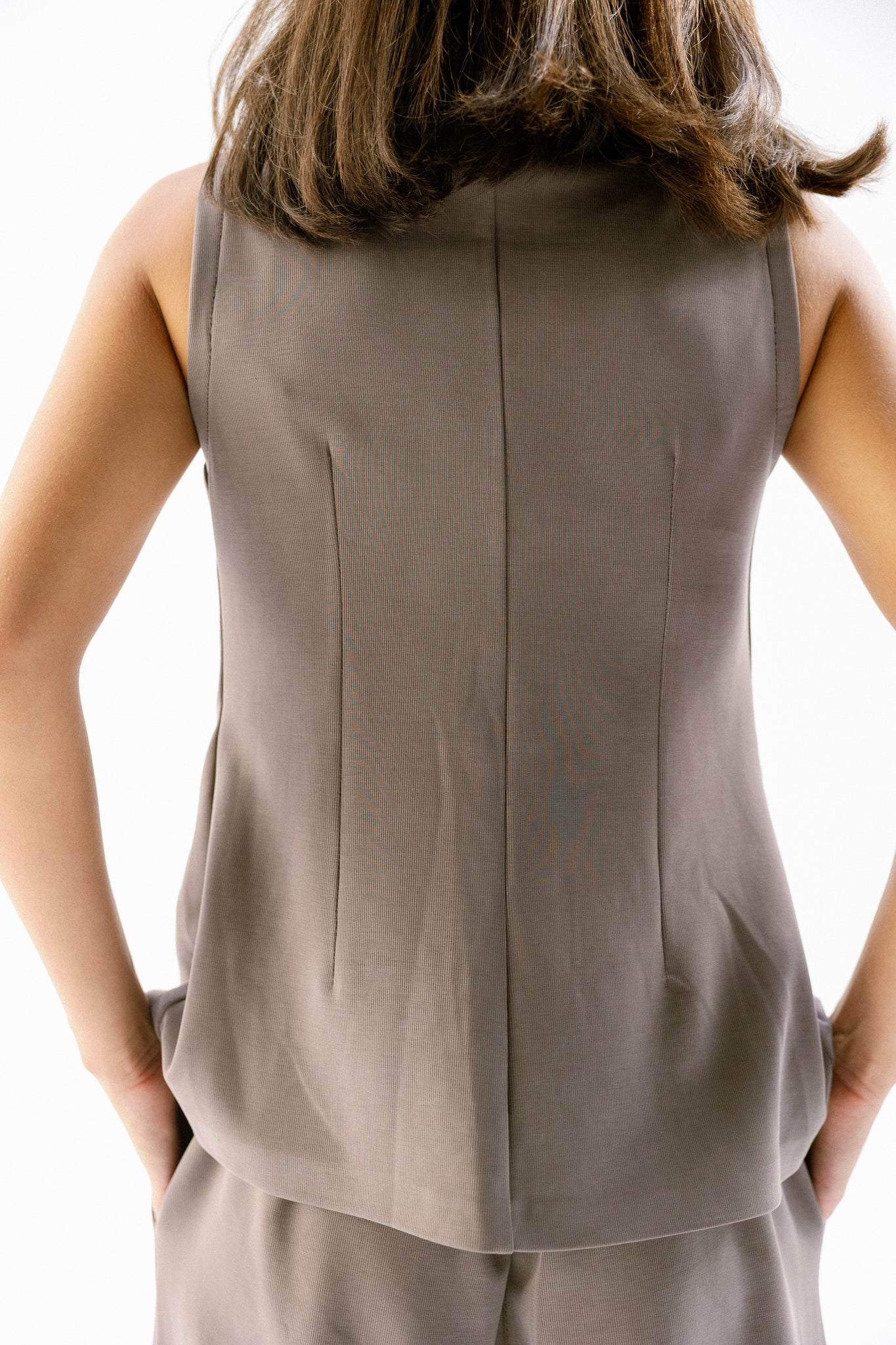 A naturally soft feel ,The silhouette is relaxed yet tailored, featuring a mid-rise waist. Individually striking, but effortlessly powerful when paired with the base form vest and jacket.