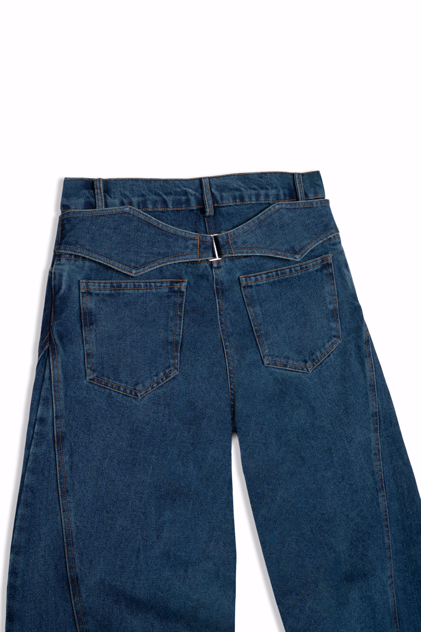 Description: A medium-waisted balloon pants with comfortable structured fit and visible stitches details and a belt in the back