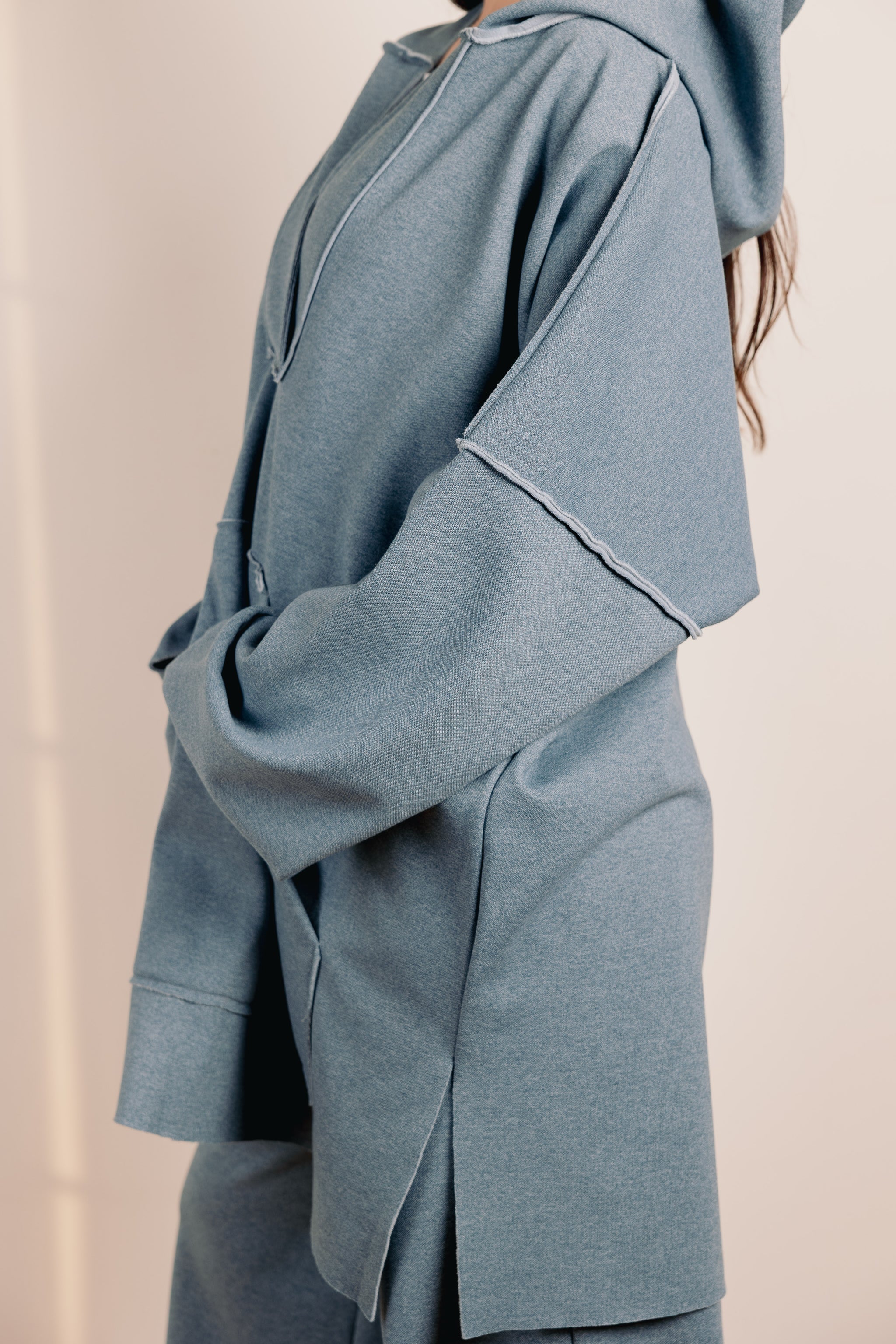 Description: Crafted from luxurious, thick Melton Fabric, known for its dense, soft brushed surface and structure. A hoodie that gives a solid feel enveloping you in cozy warmth while keeping its shape. Featuring front pockets.