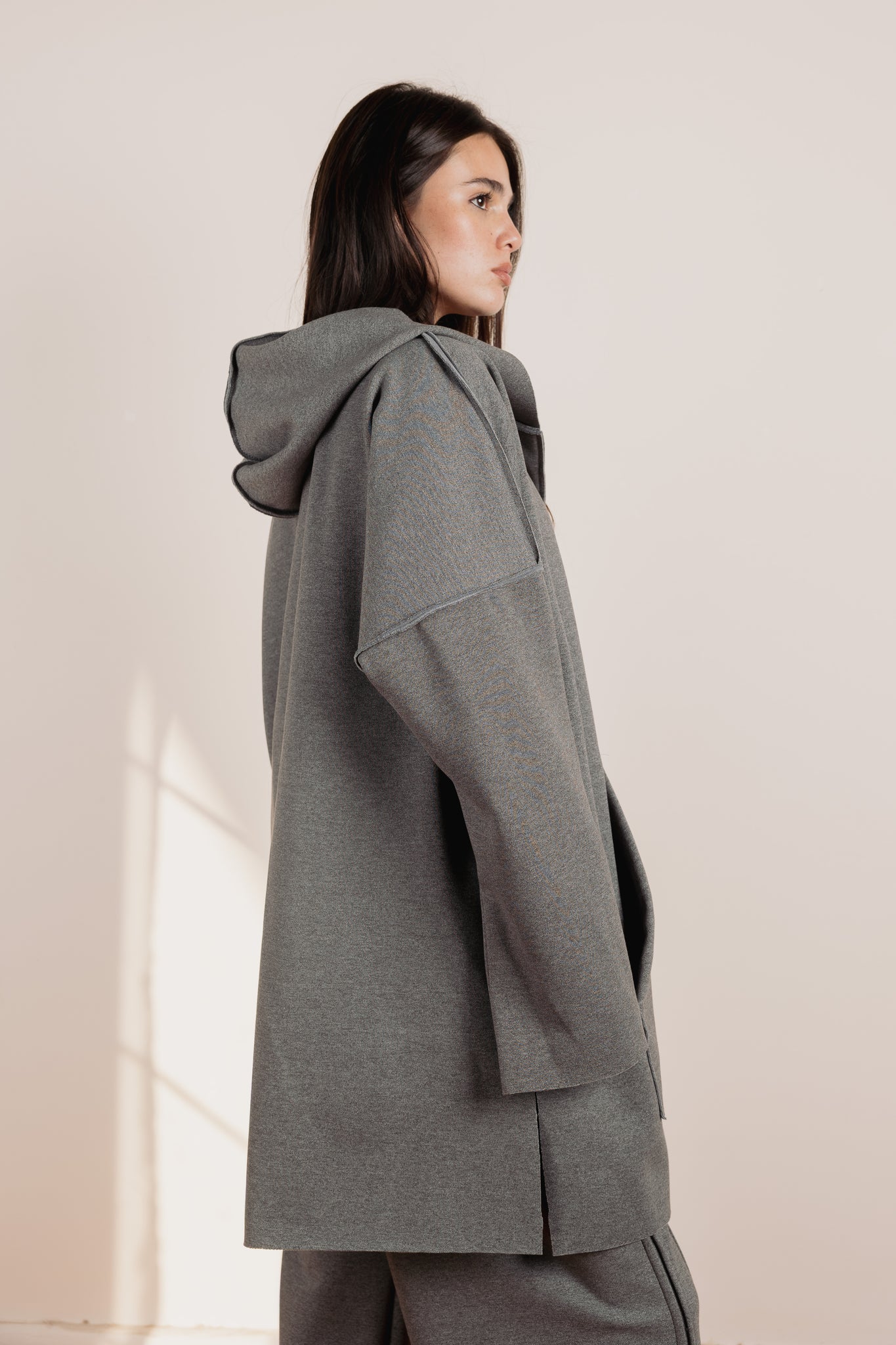 Description: Crafted from luxurious, thick Melton Fabric, known for its dense, soft brushed surface and structure. A hoodie that gives a solid feel enveloping you in cozy warmth while keeping its shape. Featuring front pockets.