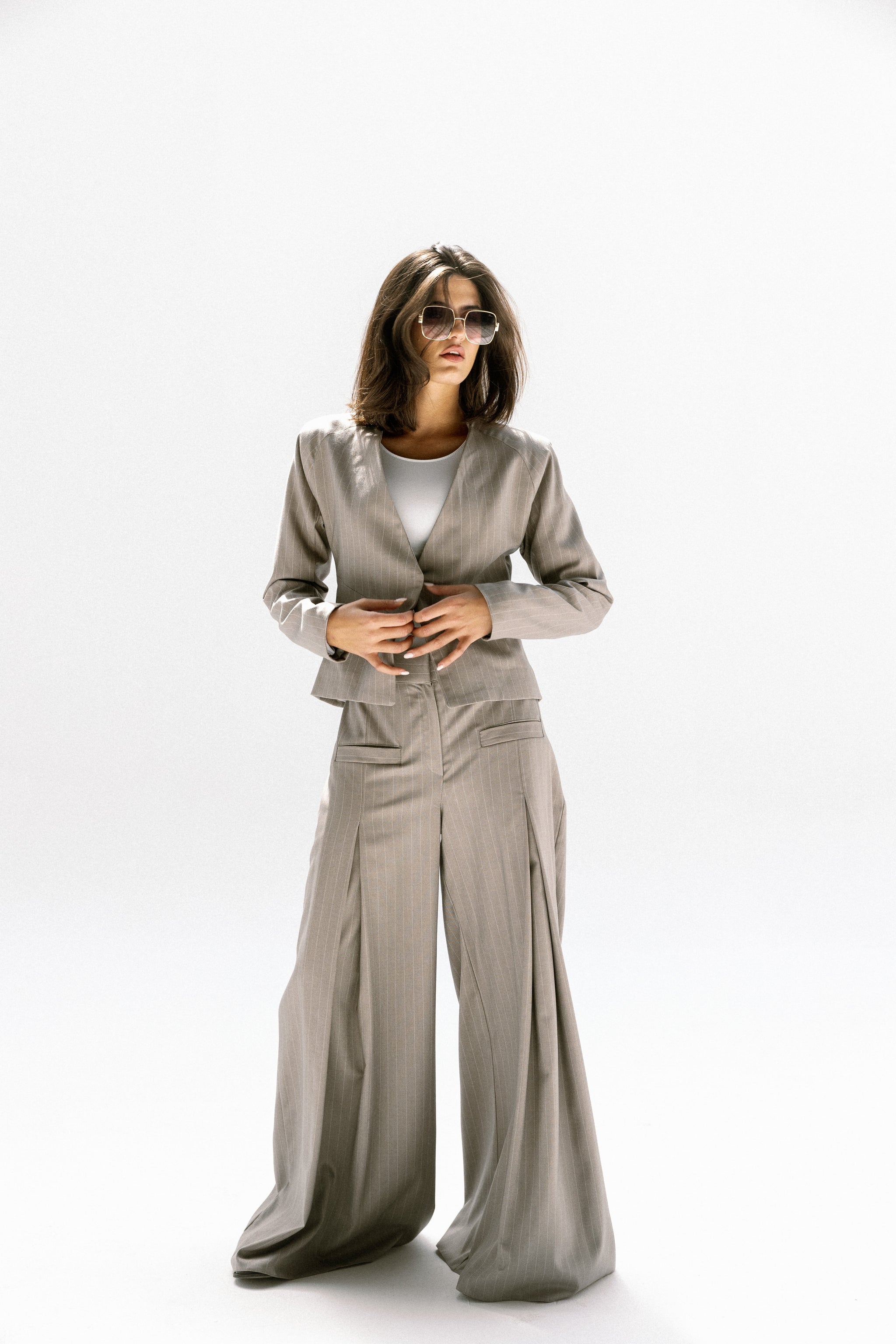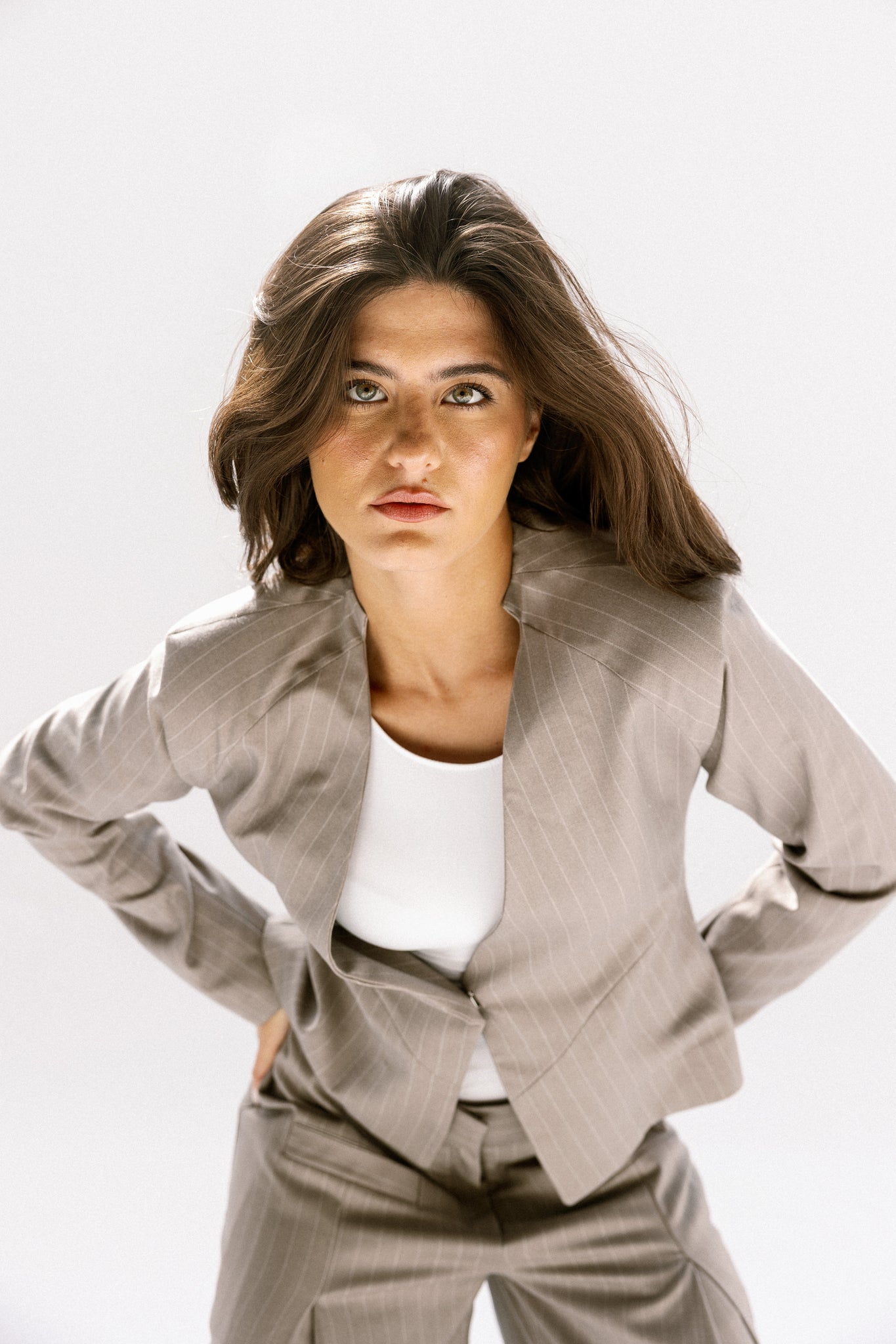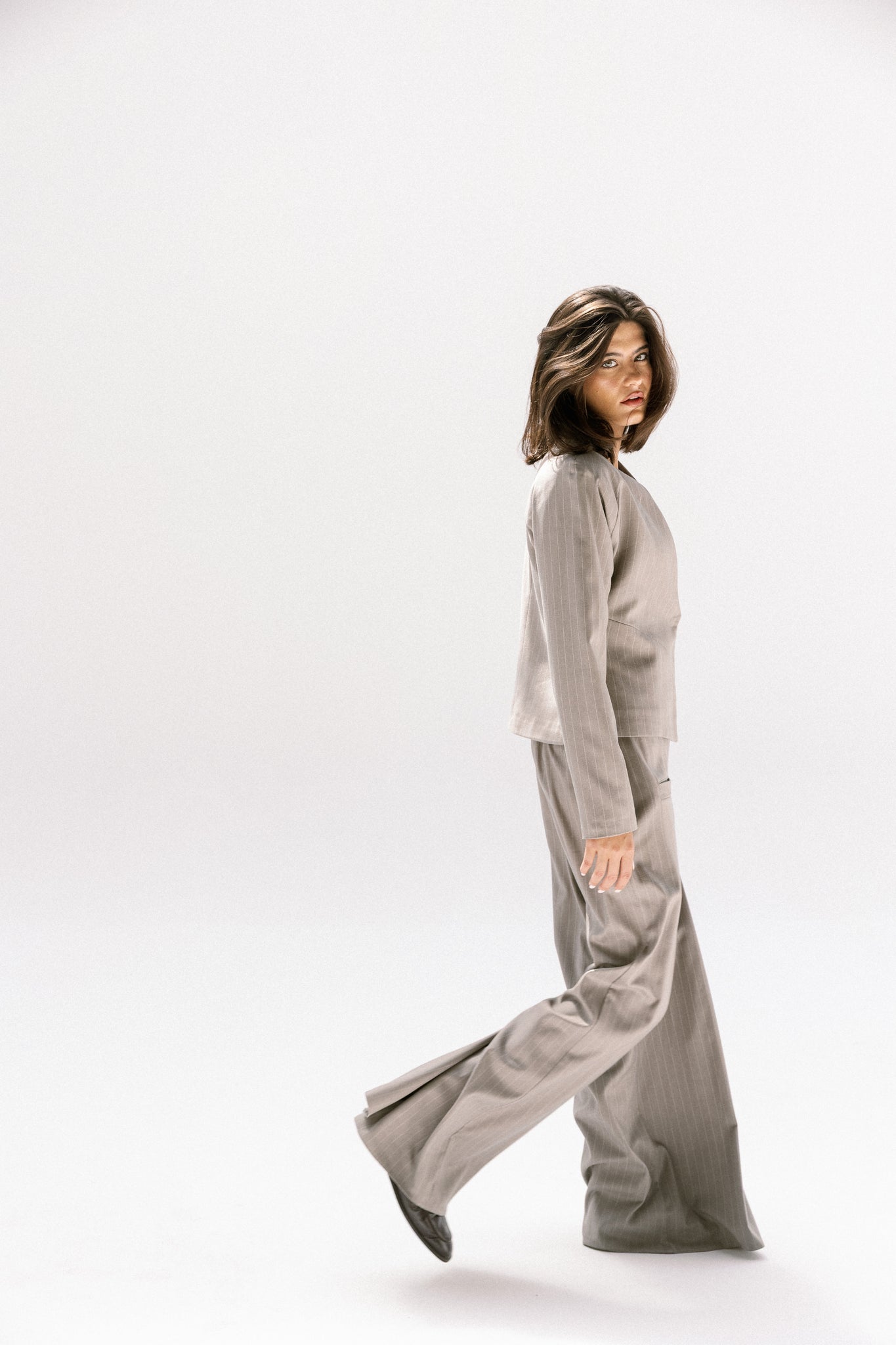A sophisticated blazer that comes together with a button and hugs the body to give the perfect shape. Individually striking, but effortlessly powerful when paired with the contour pants.