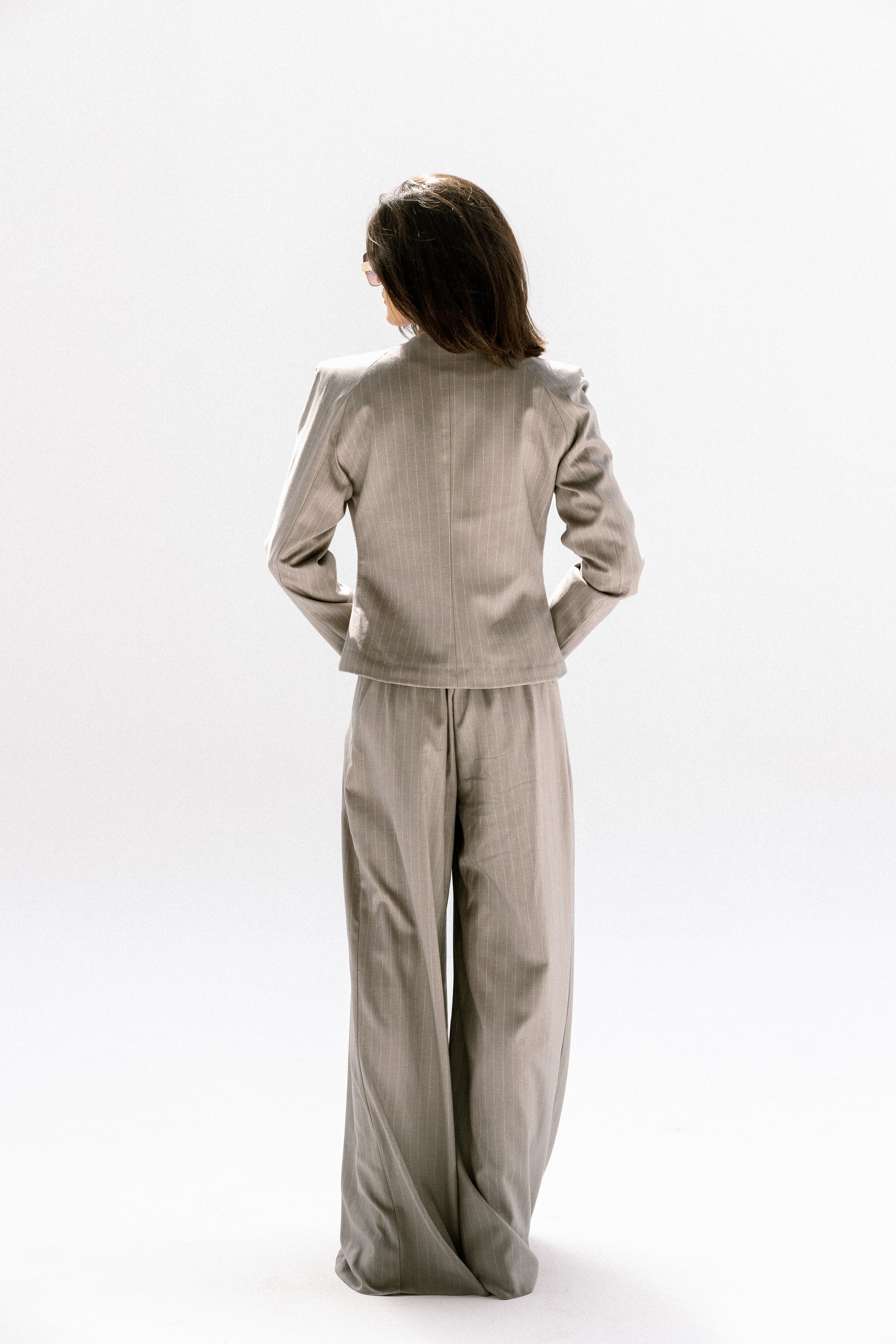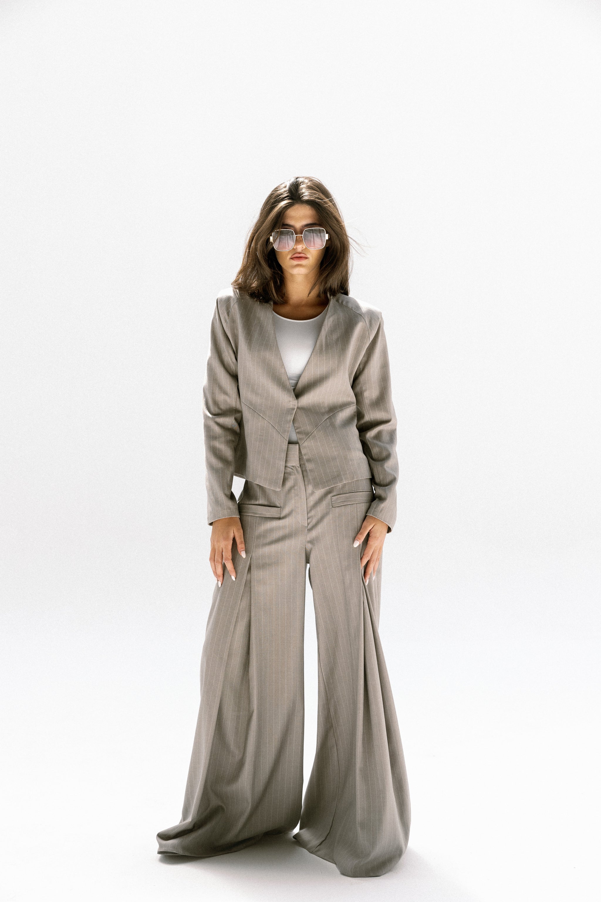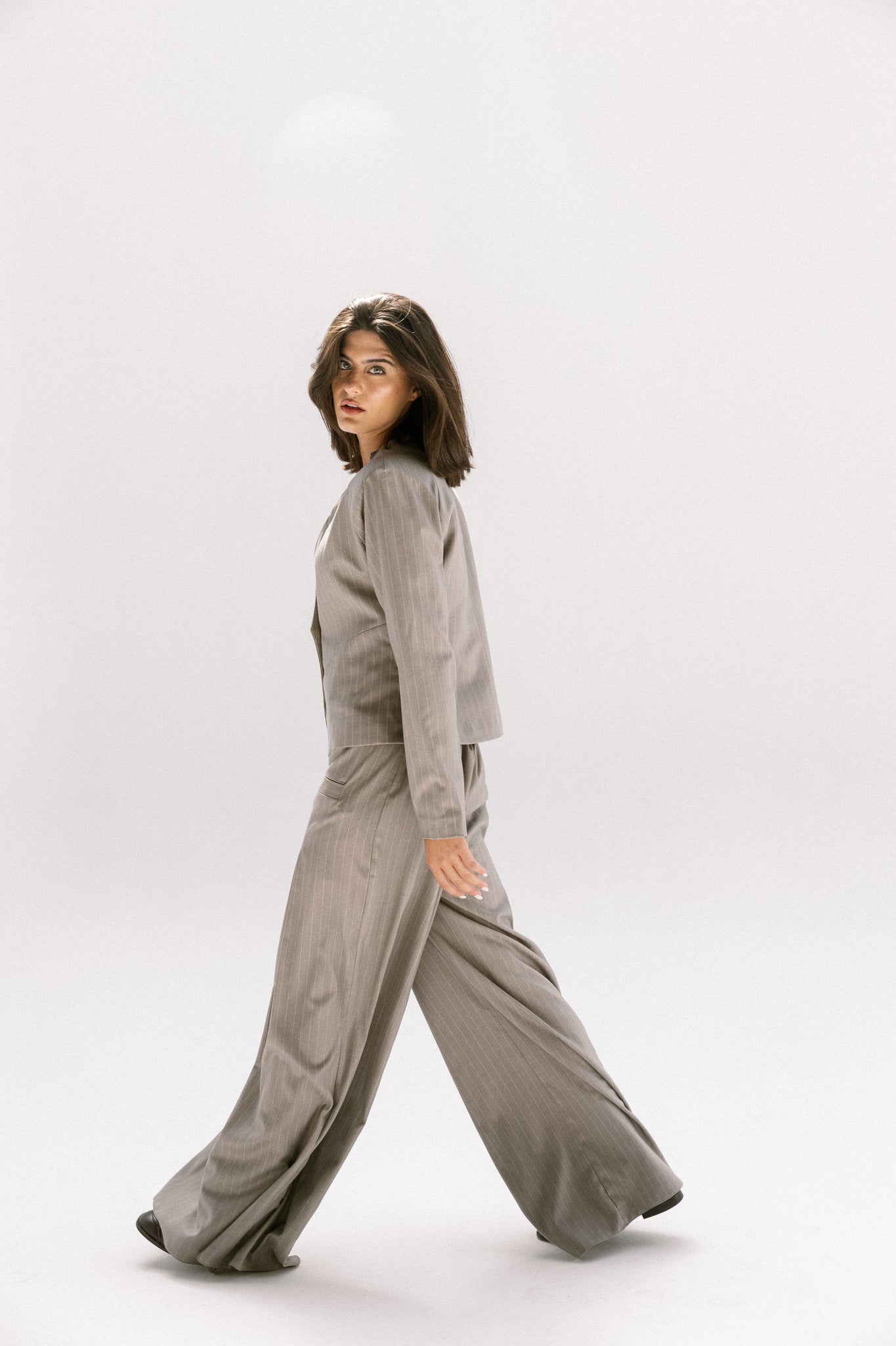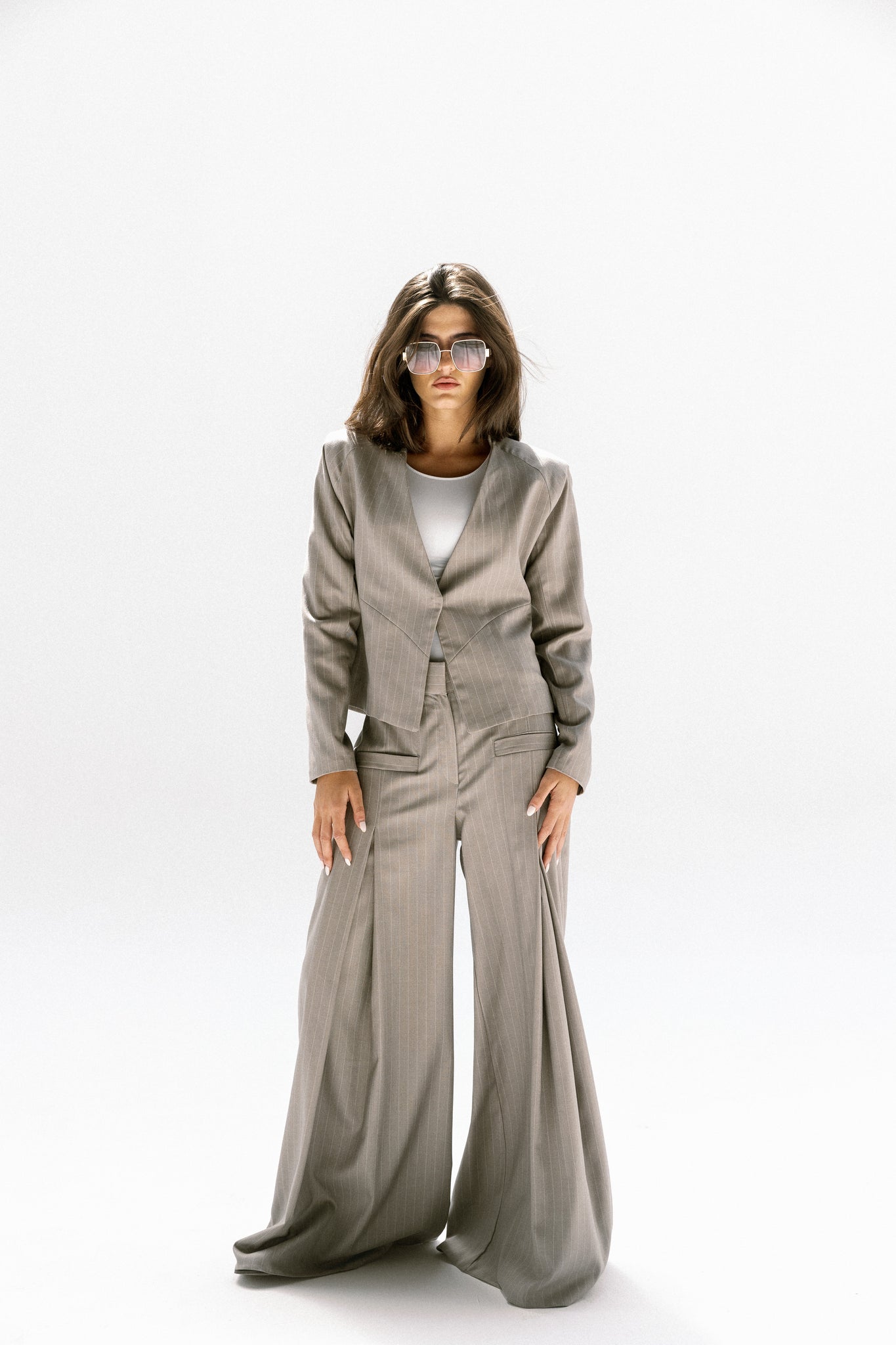 A sophisticated blazer that comes together with a button and hugs the body to give the perfect shape. Individually striking, but effortlessly powerful when paired with the contour pants.