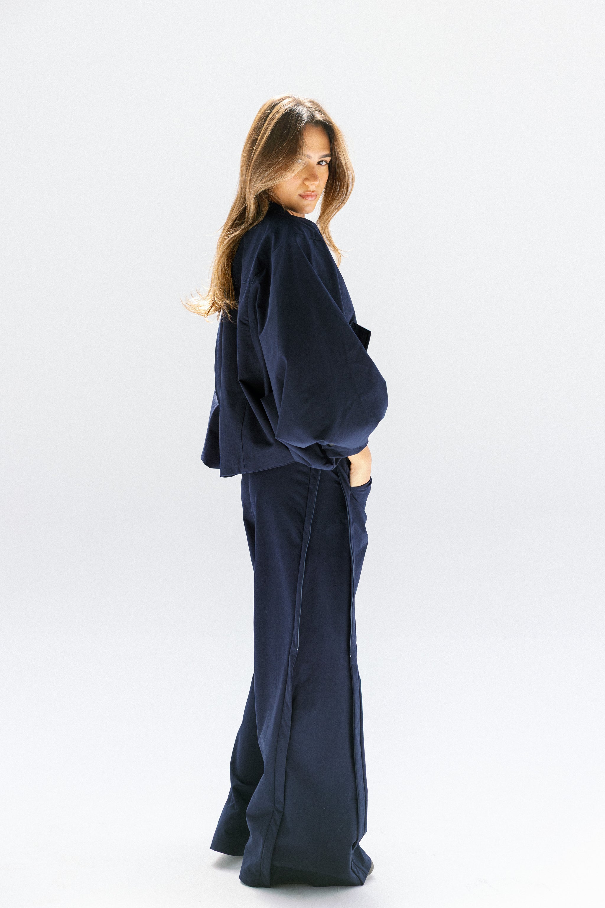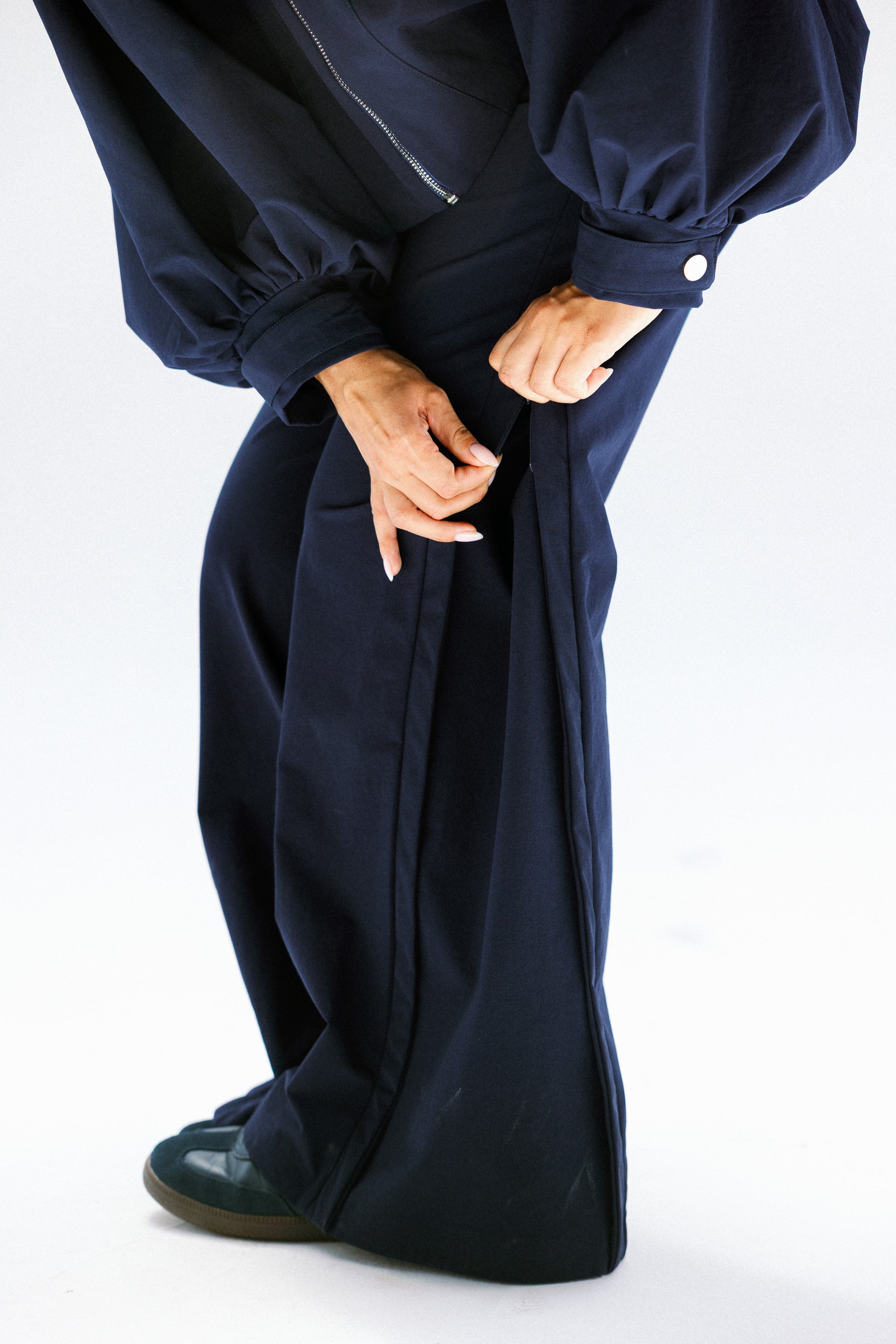 wide-leg pants, offering both movement and function with adjustable waist ties and a relaxed drape. Individually striking, but effortlessly powerful when paired with the storm core jacket.