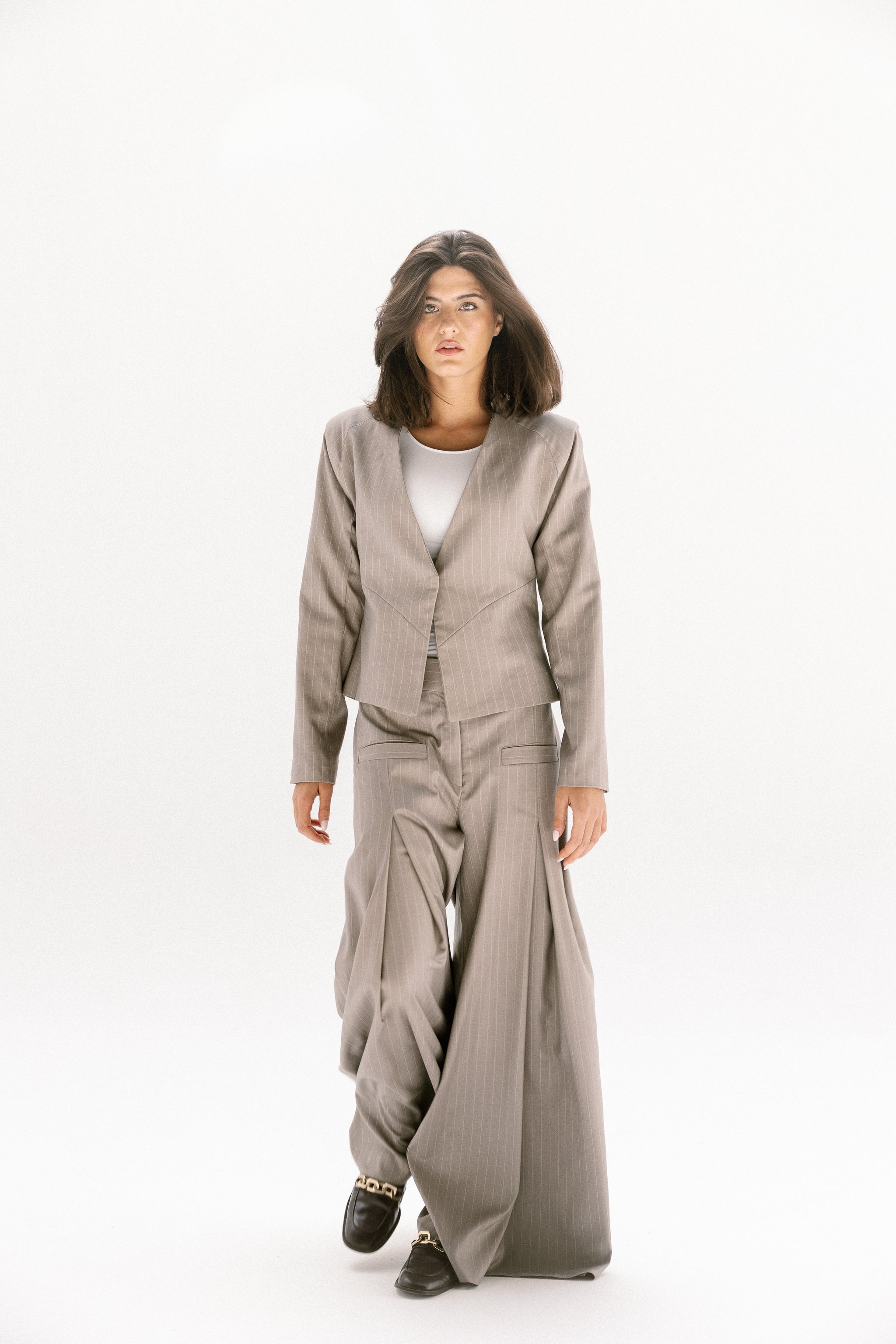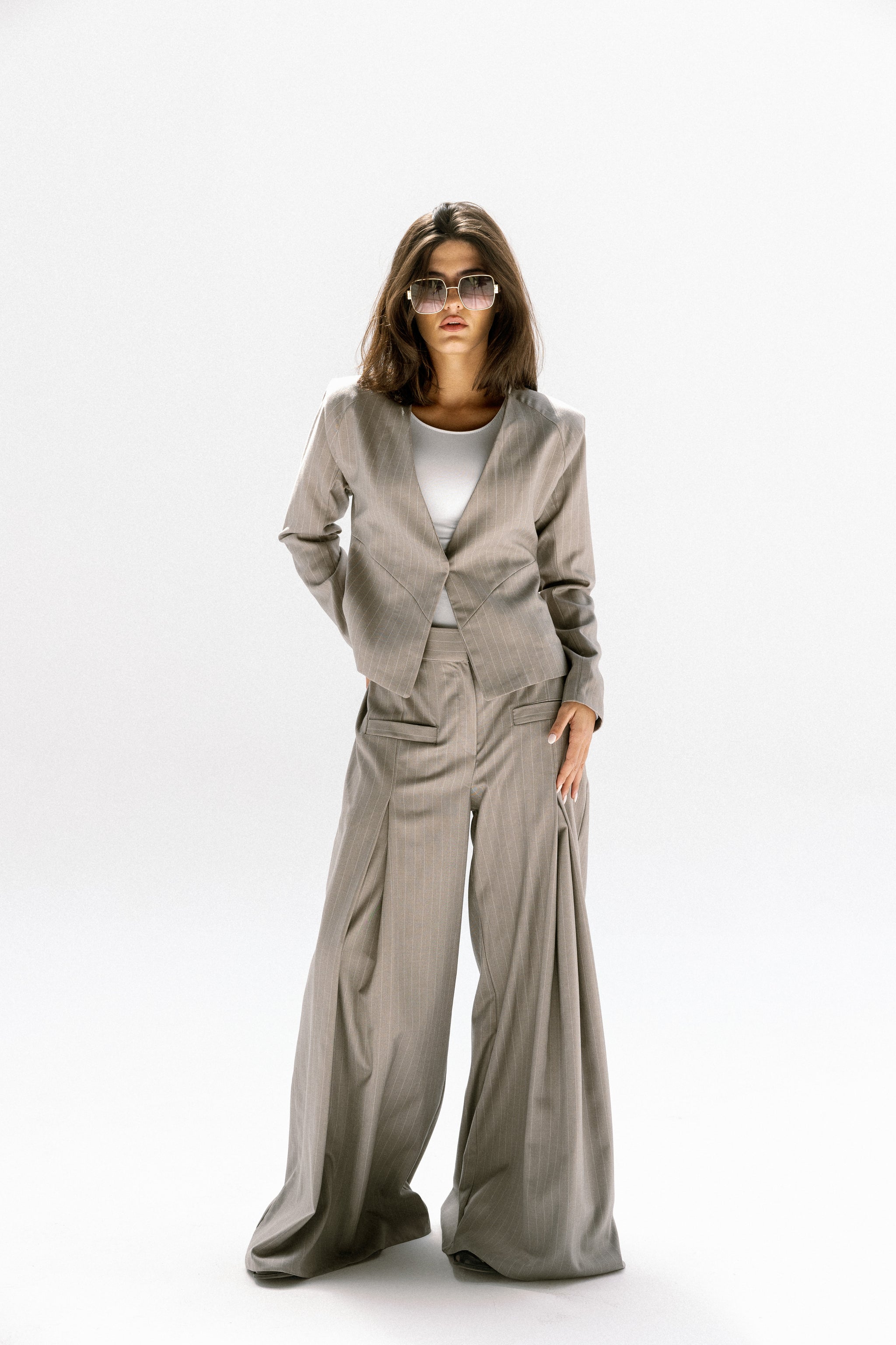 A Sophisticated pair of pants with uniquely designed pockets and relaxed drape. Individually striking, but effortlessly powerful when paired with the contour jacket.