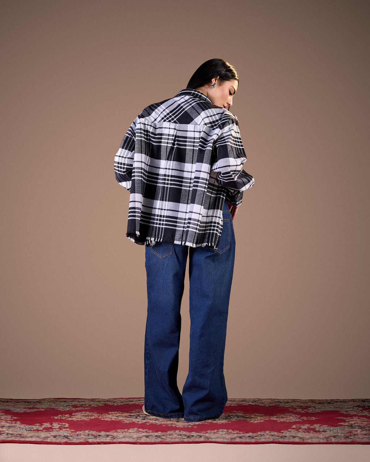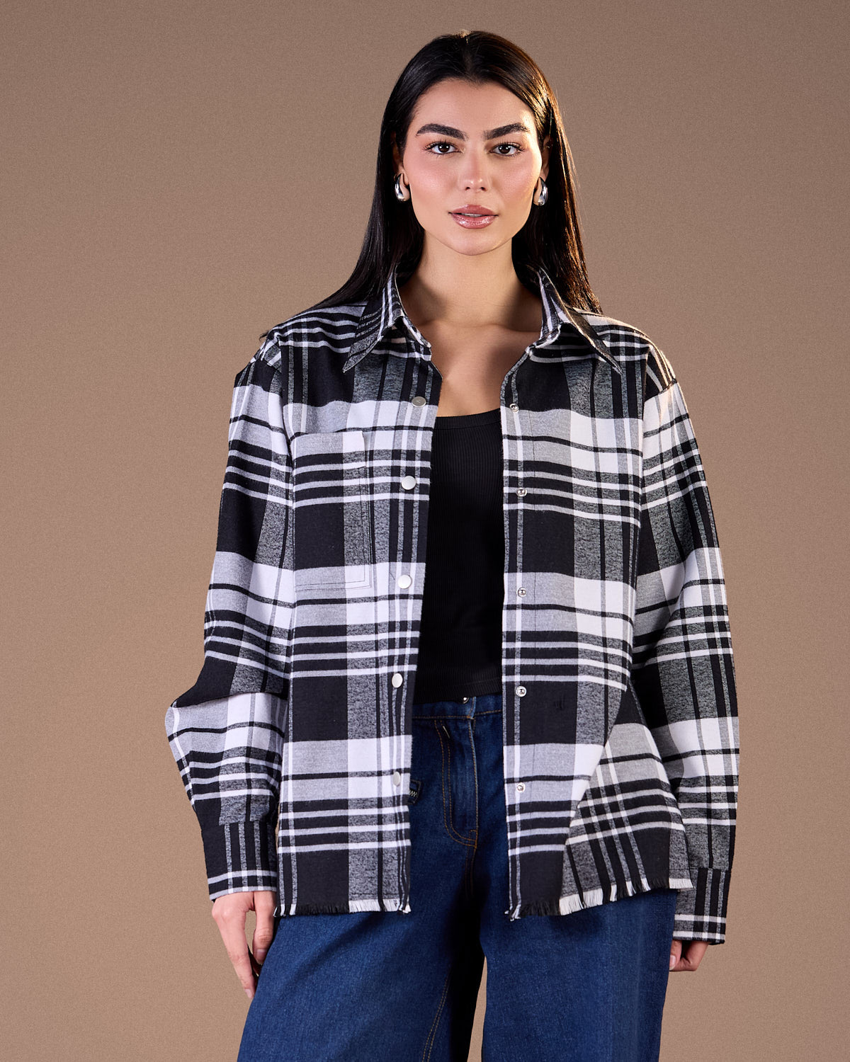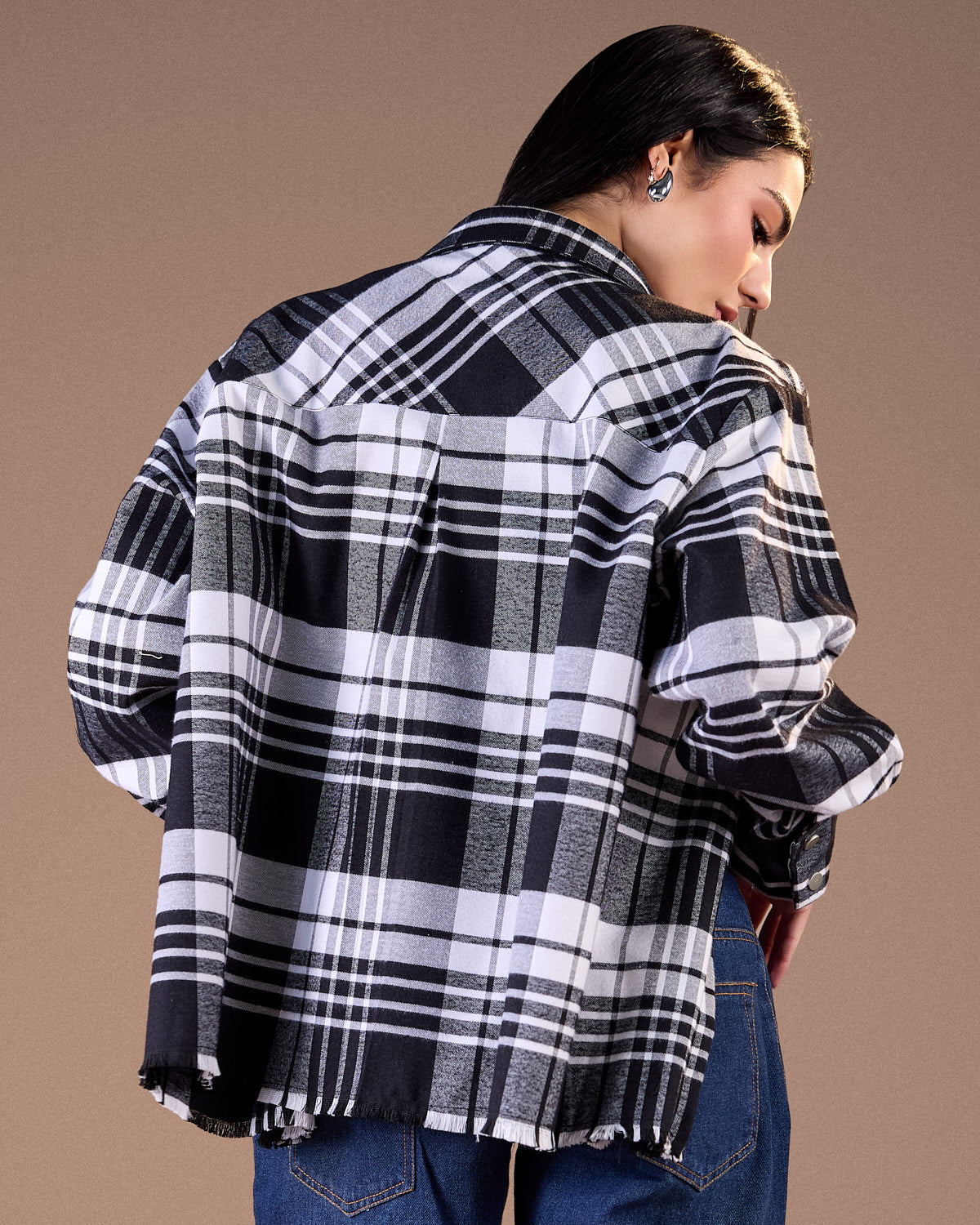 Color:Black and white plaid with soft grey undertones
