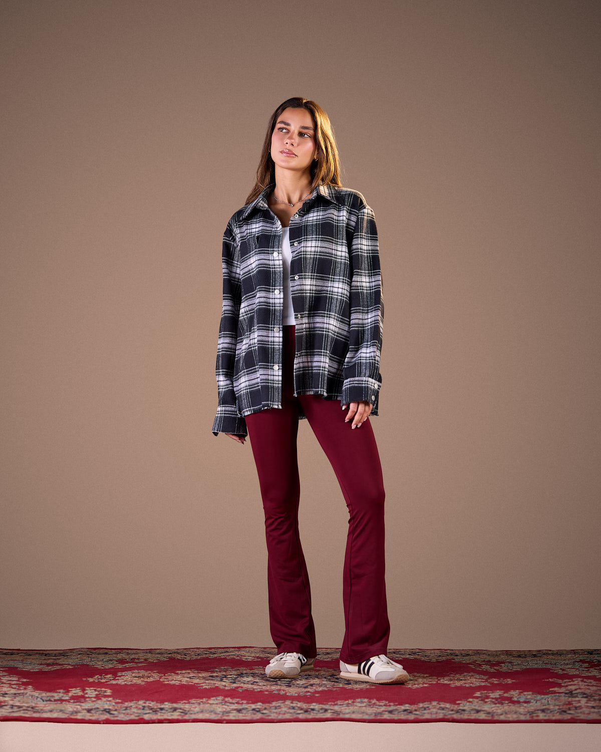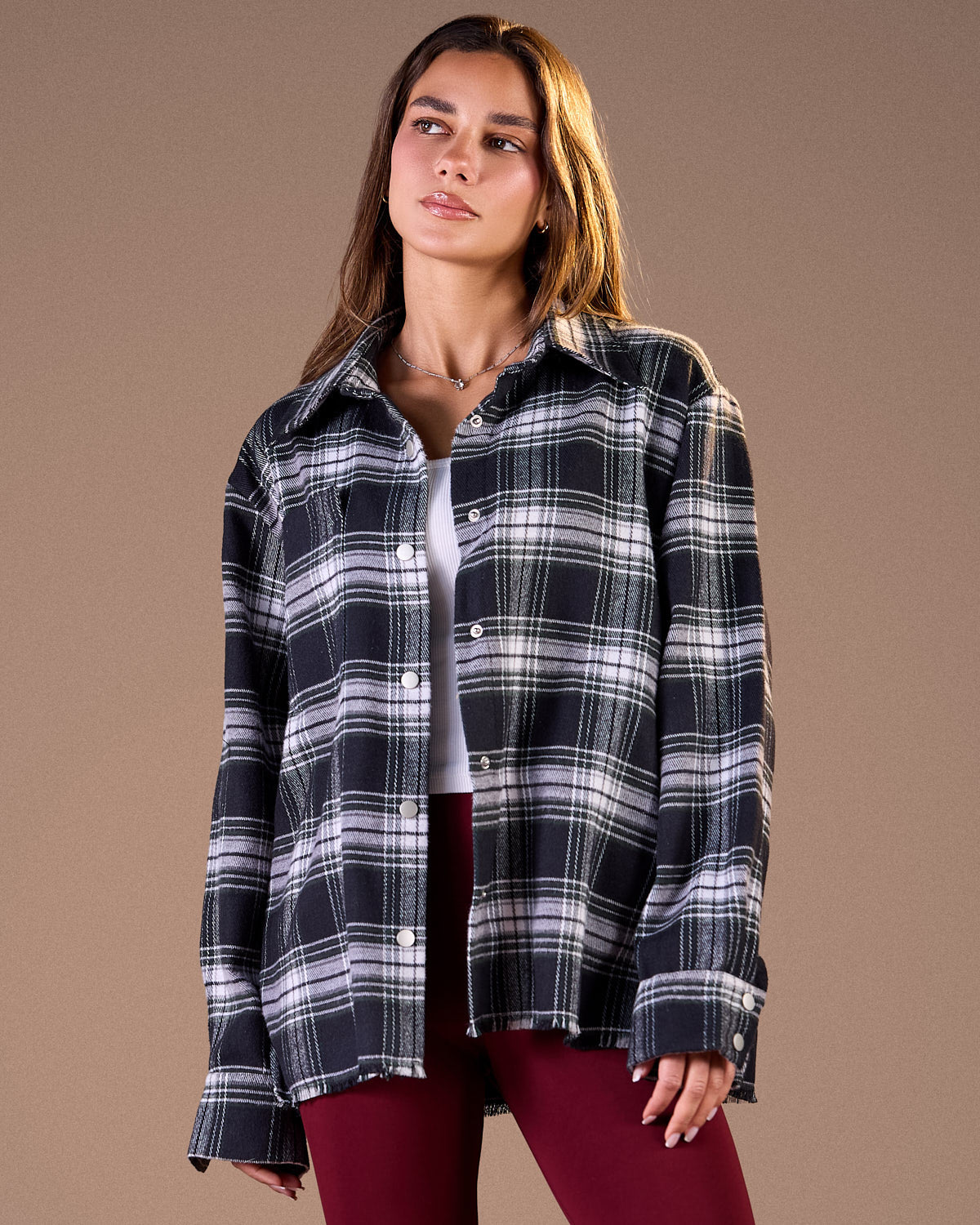 Color: Black & WhiteFabric: Wool BlendProduct Details:Long sleeves with buttoned cuffsFront buttonClassic collarRelaxed, oversized fit