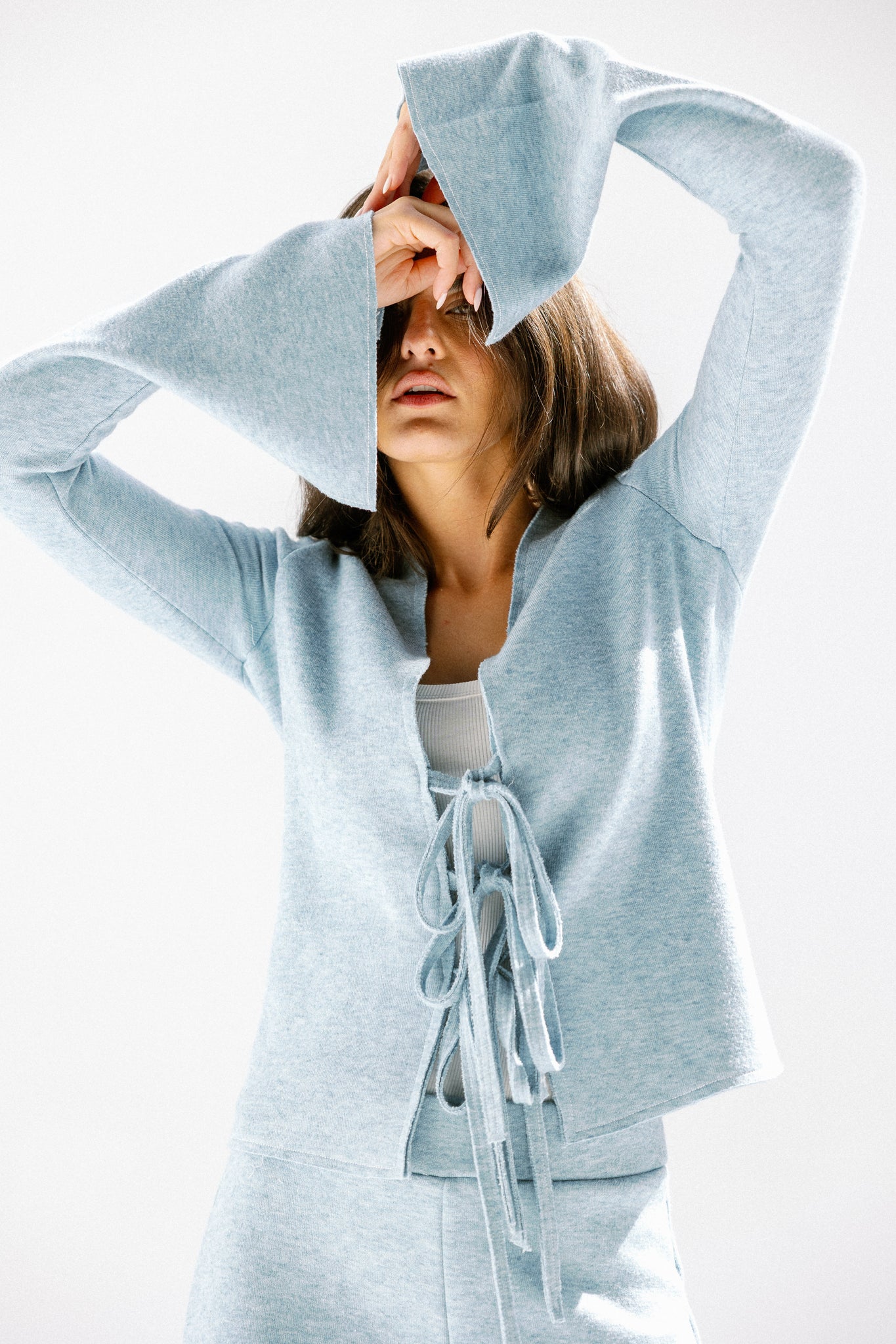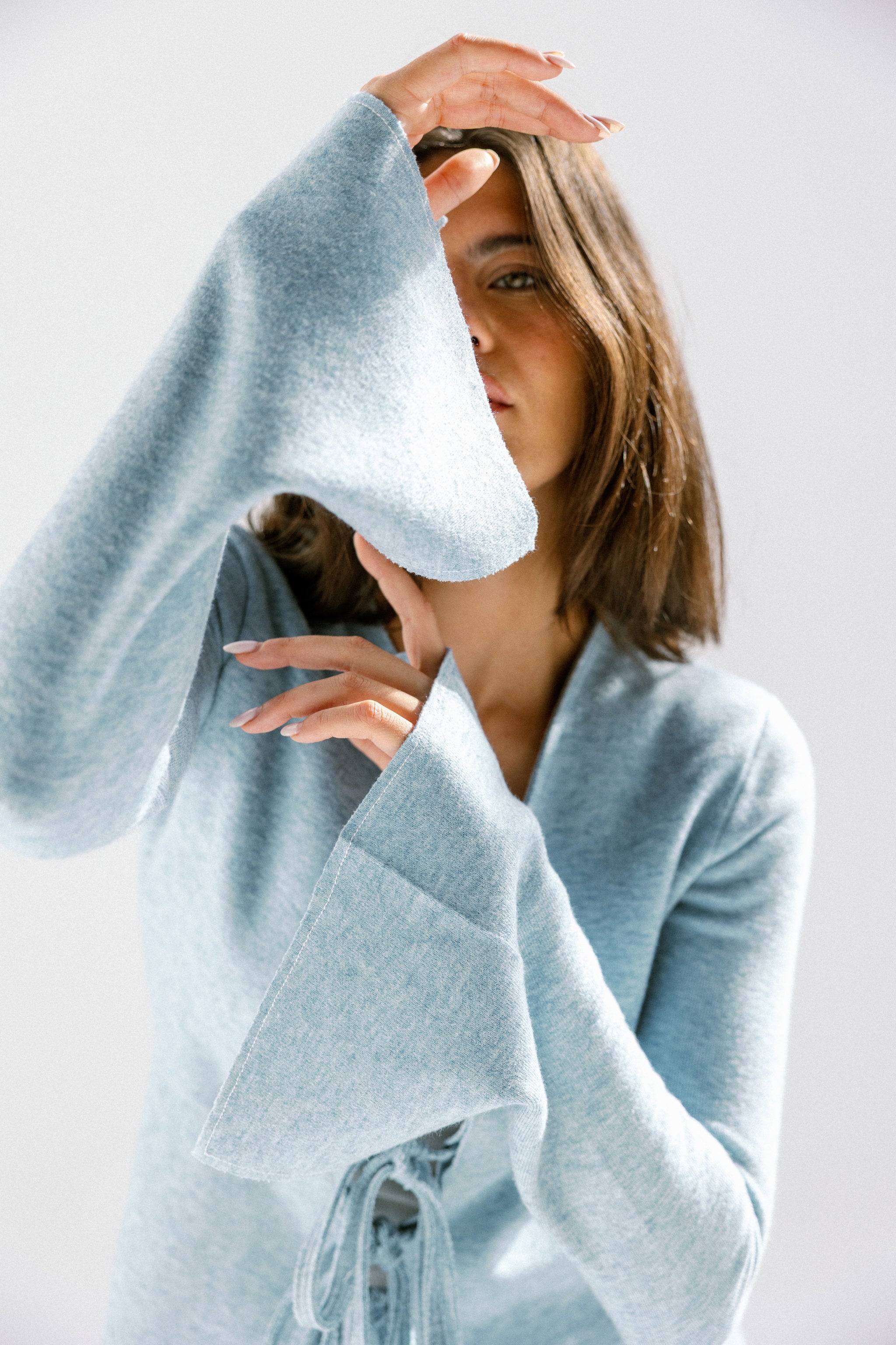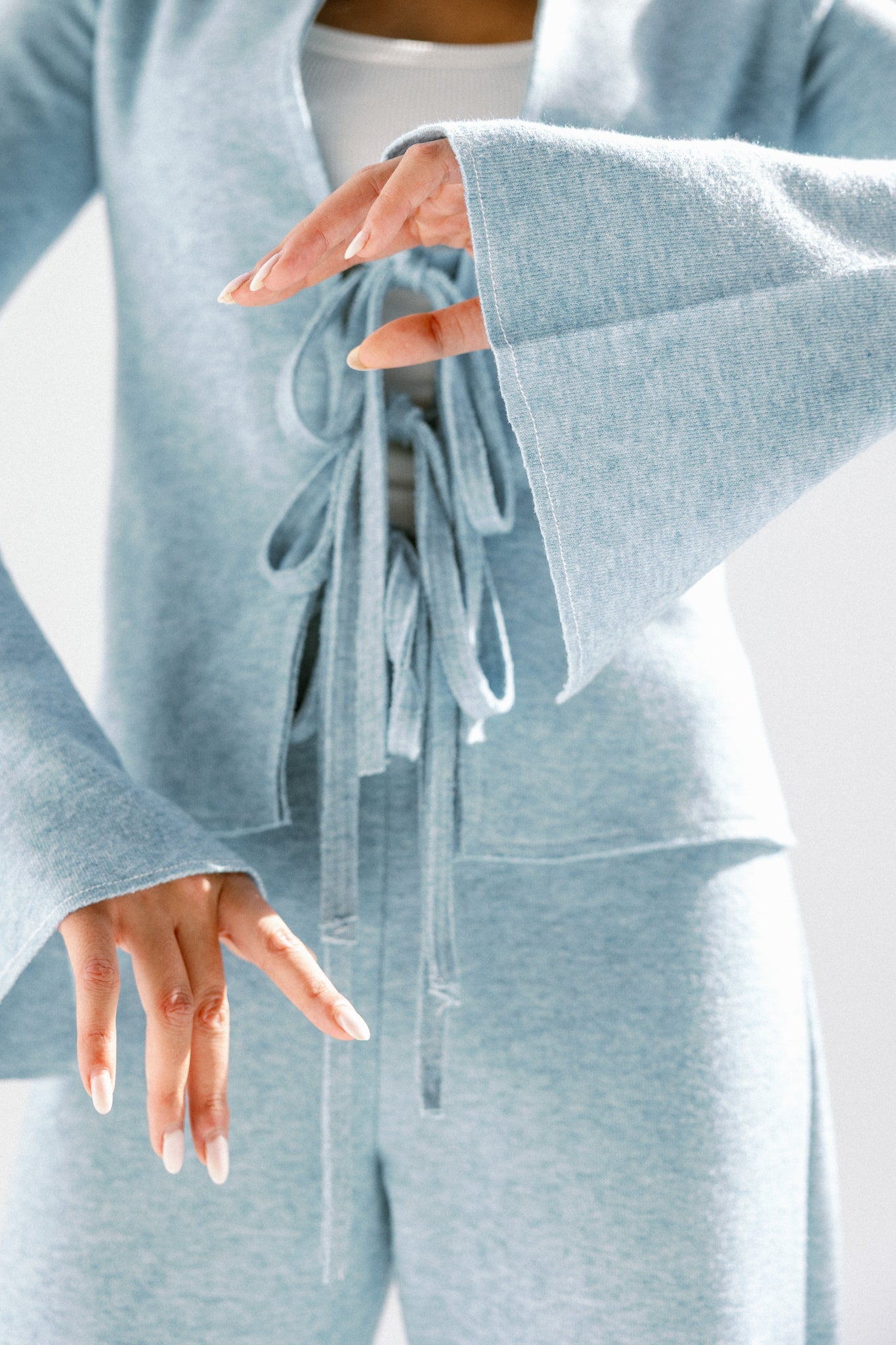 Flows with a natural drape that captures both comfort and subtle sophistication. Individually striking, but effortlessly powerful when paired with the knot top.
