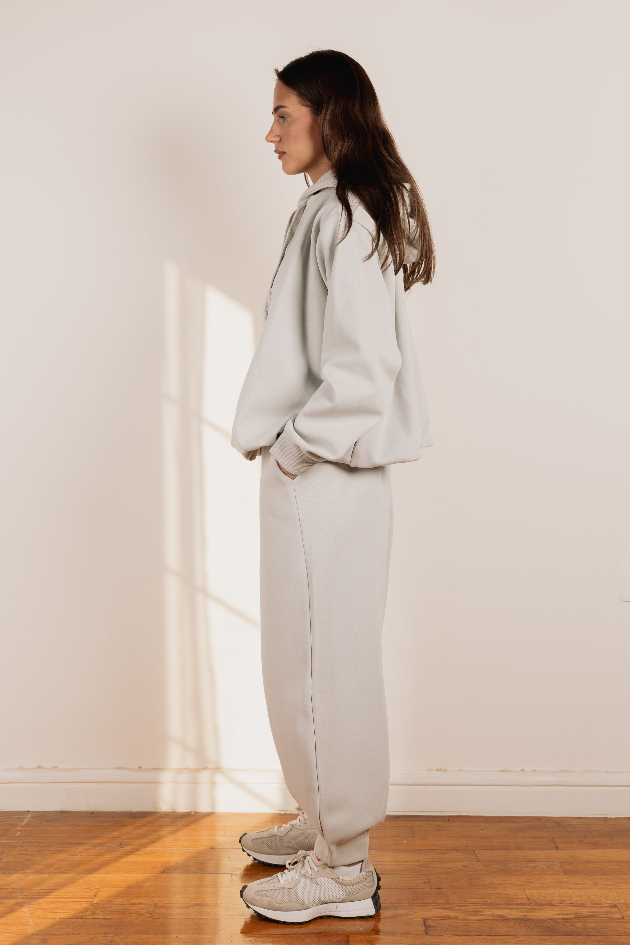 Description: Designed with a high-waisted fit and a relaxed, wide-leg silhouette that drapes elegantly to the floor. Features a comfortable elasticated waistband for an easy pull-on style, and subtle side pockets. Perfect for an elongated, fluid look when paired with the 'Oasis' Hoodie or dressed up with a fitted top.