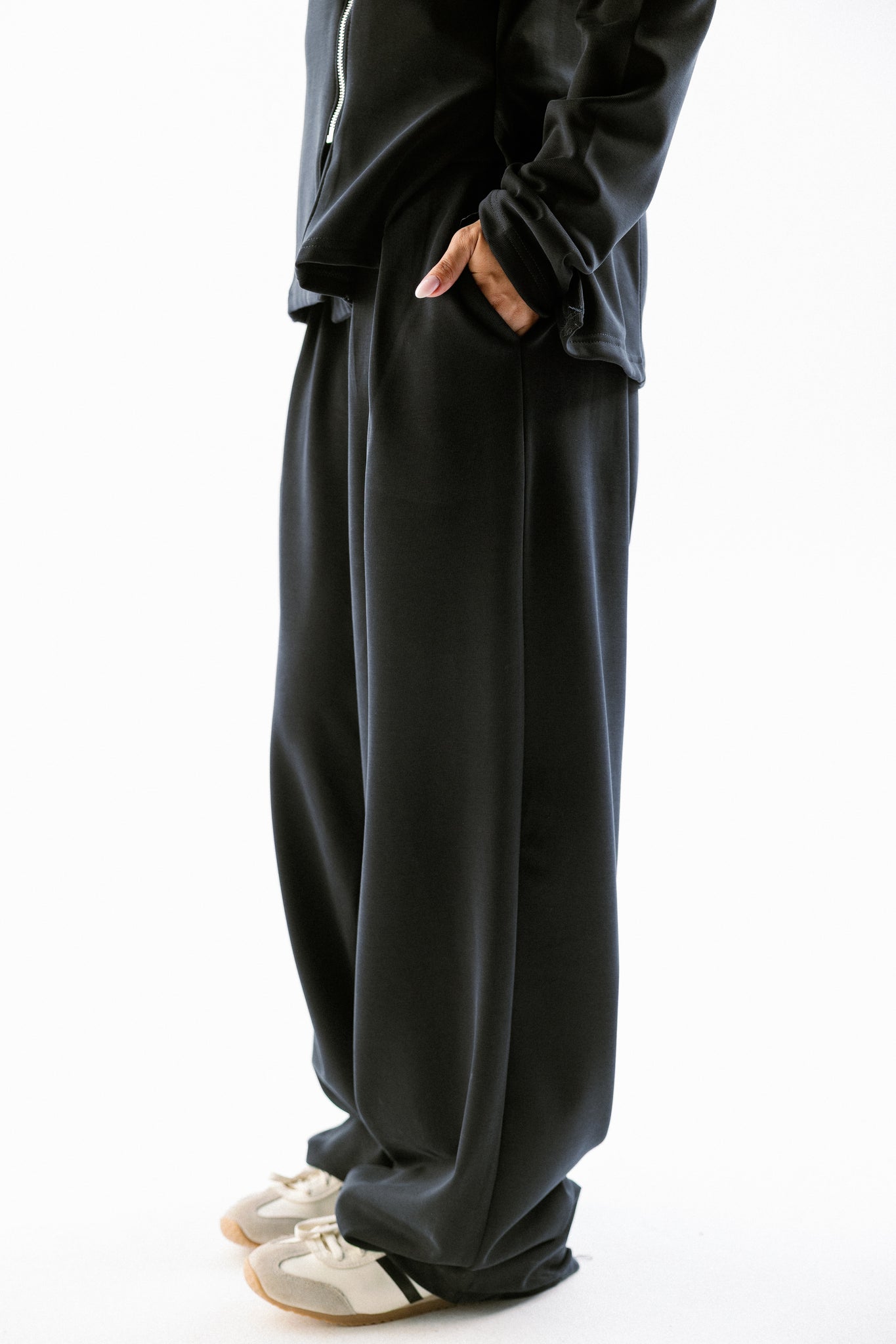 Defined by its unique side zipper and modern cut neckline. Individually striking, but effortlessly powerful when paired with the sideline pants.